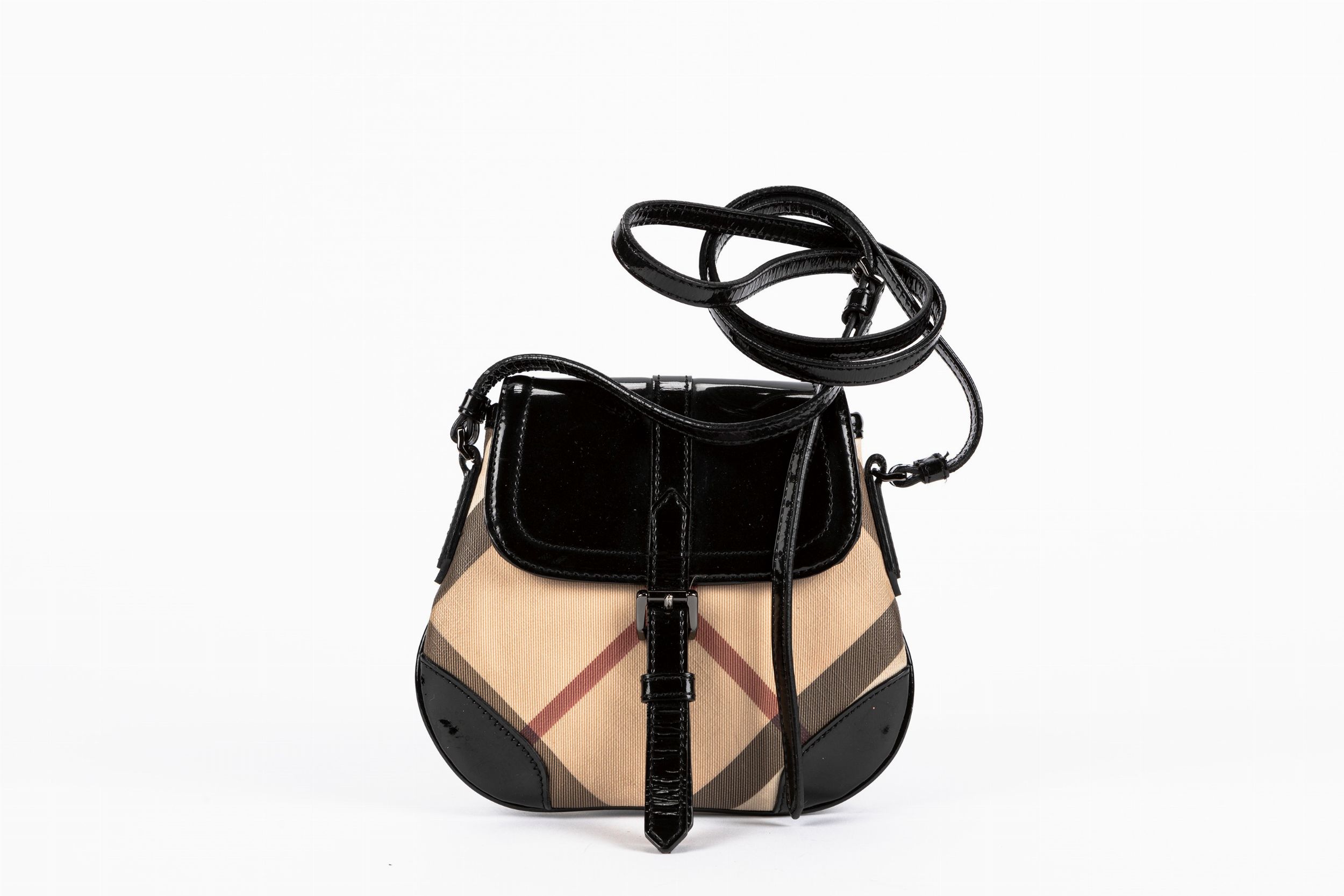 in tessuto plastificato, dettagli e tracolla in vernice color nero, cm 19 (difetti)