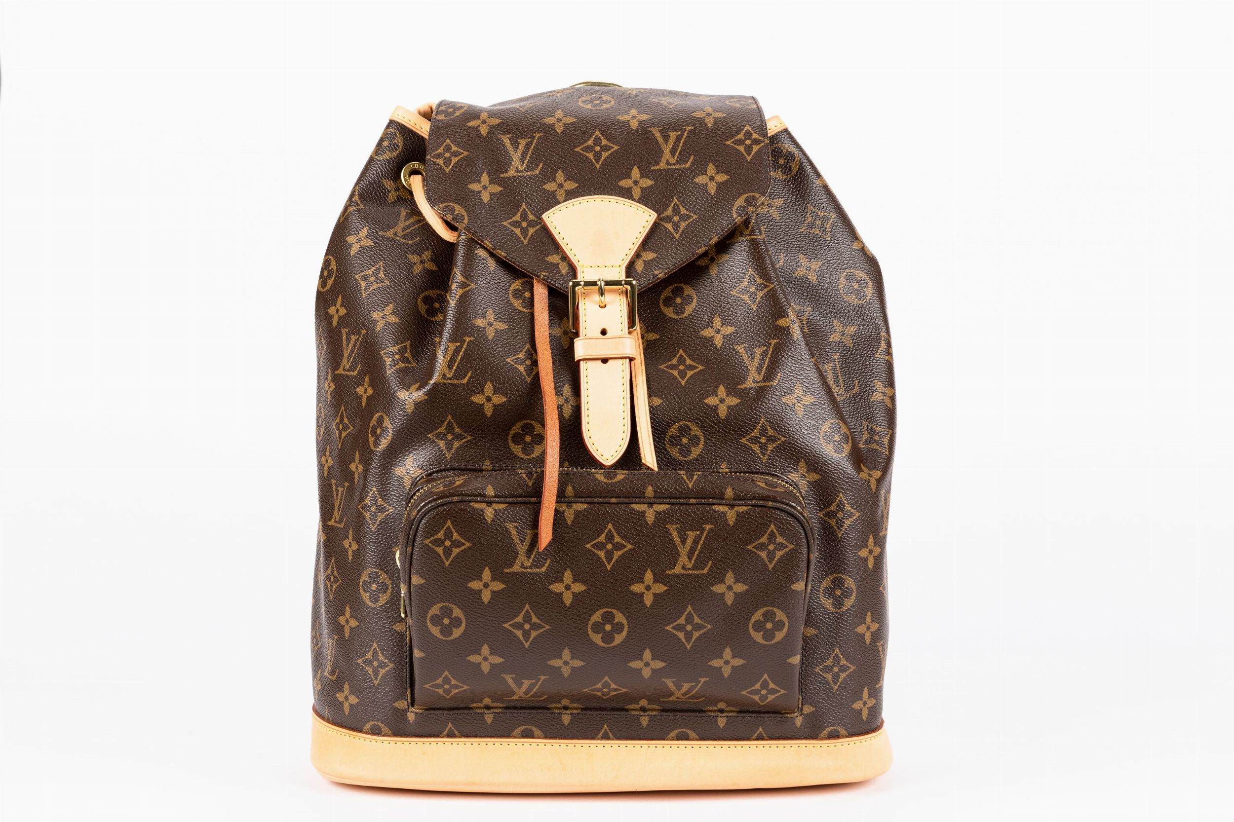 in tela monogrammata e cuoio, con tracolle, cm 30, con sacchetto (lievissimi difetti)