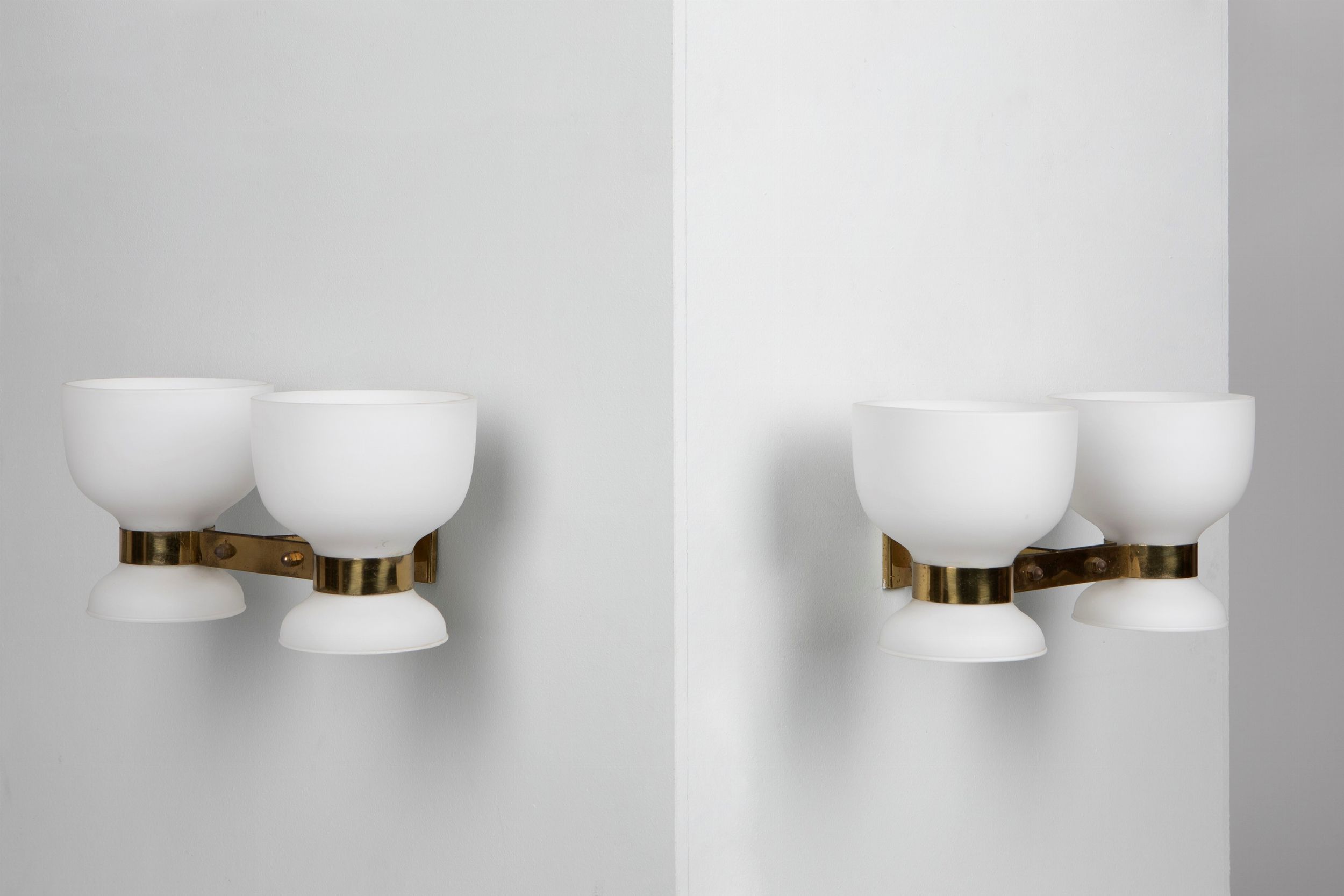 1950 ca. in vetro satinato bianco e struttura in ottone.