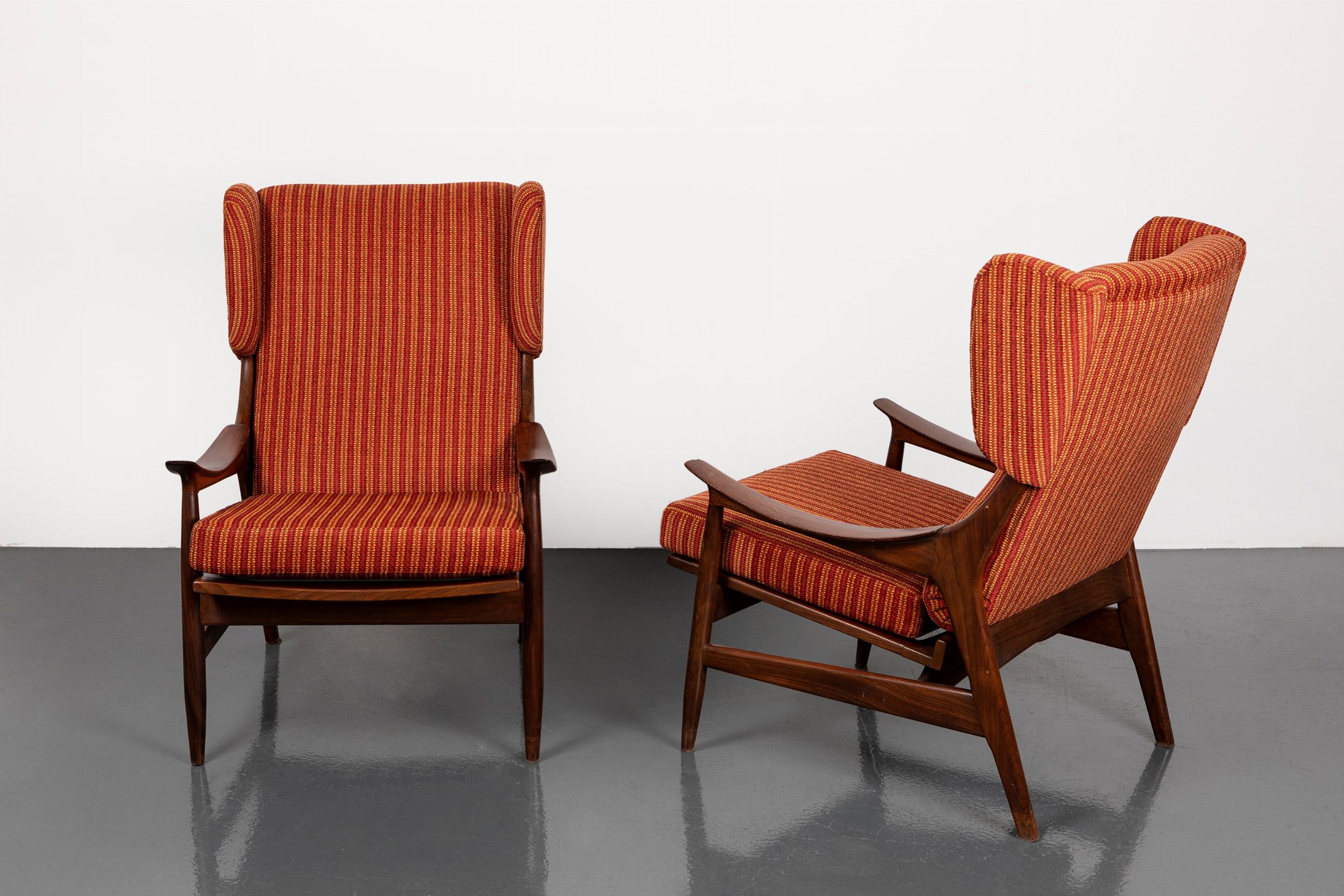 1950 ca. con struttura in legno di teak e rivestimento in tessuto.