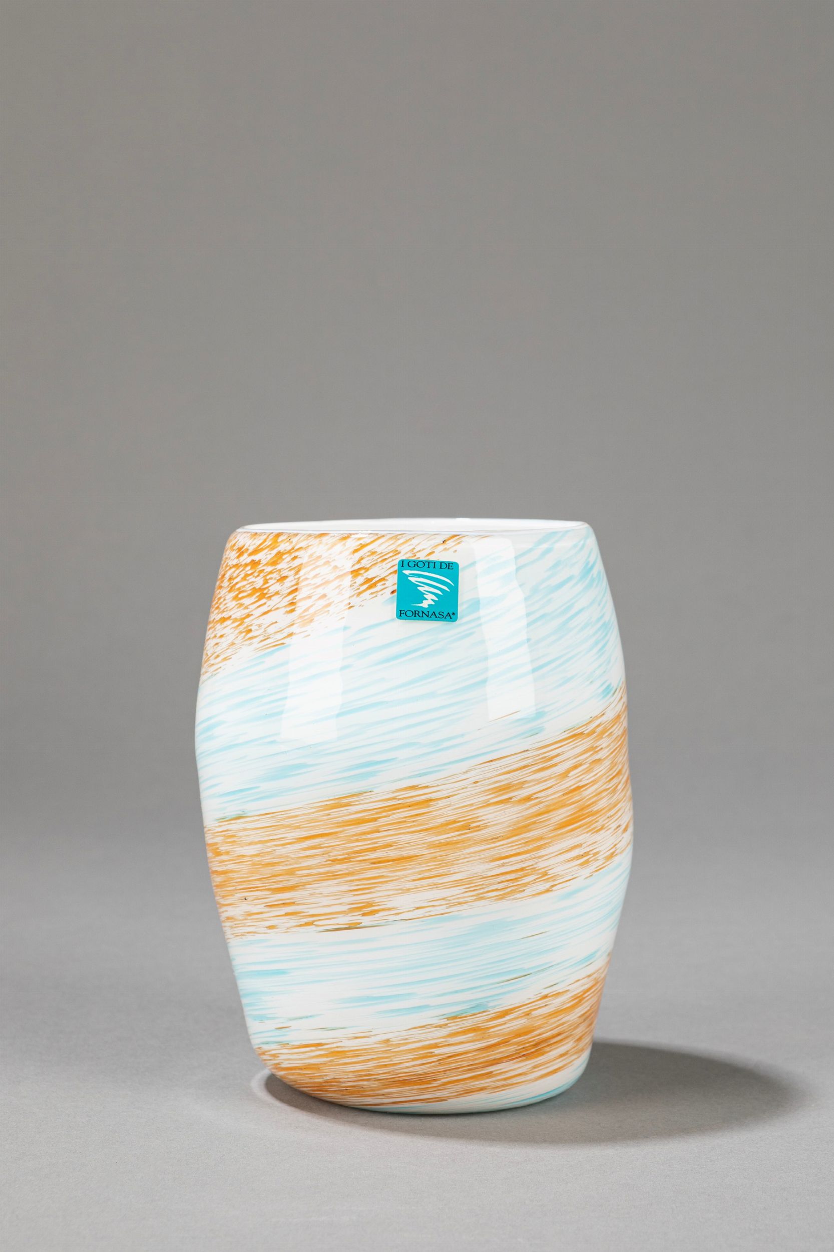 1993 bicchiere in vetro soffiato di Murano con struttura in metallo. Firma e anno incisi sotto la base. Etichetta originale