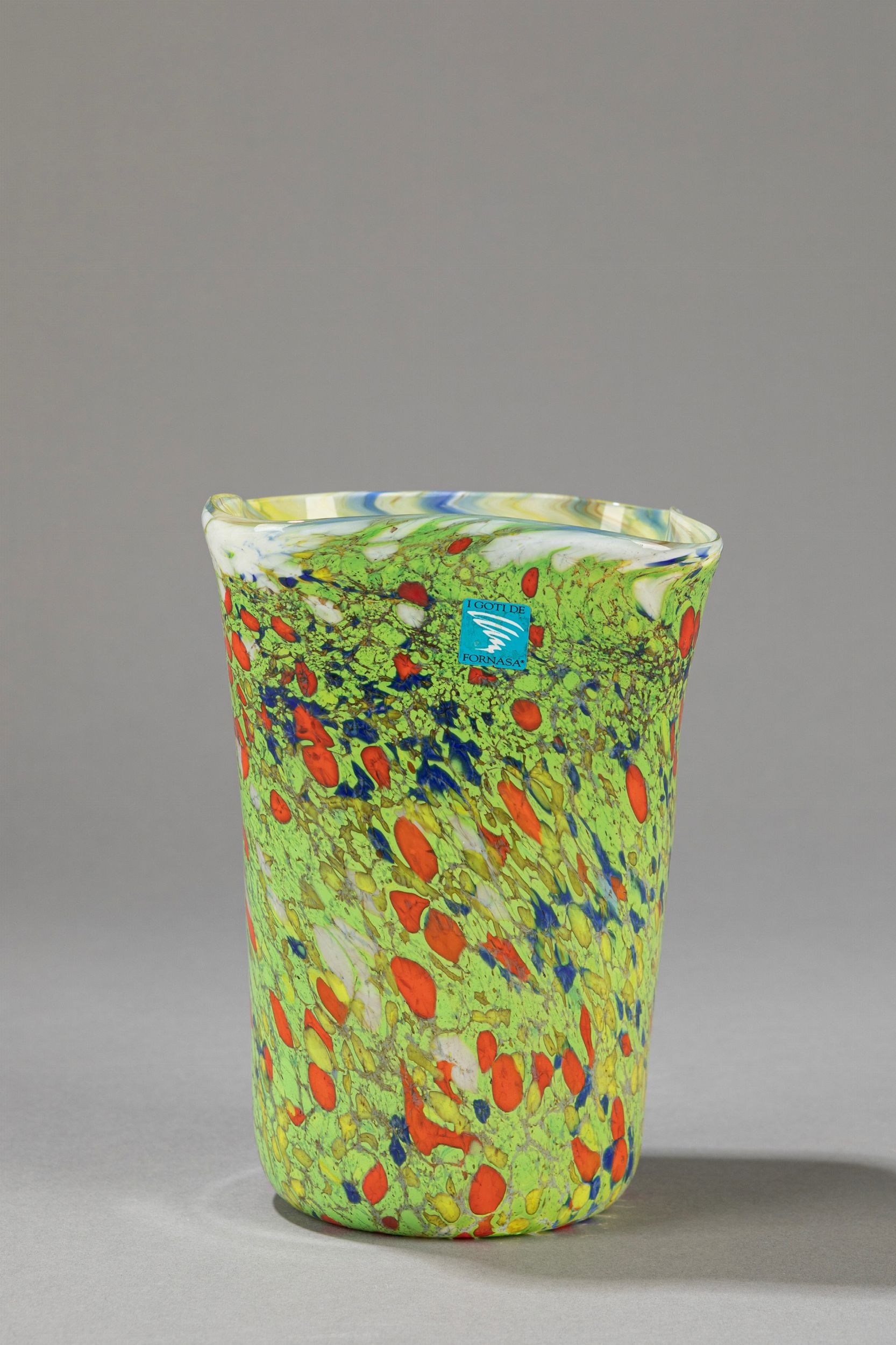 1996 bicchiere in vetro soffiato di Murano con struttura in metallo.