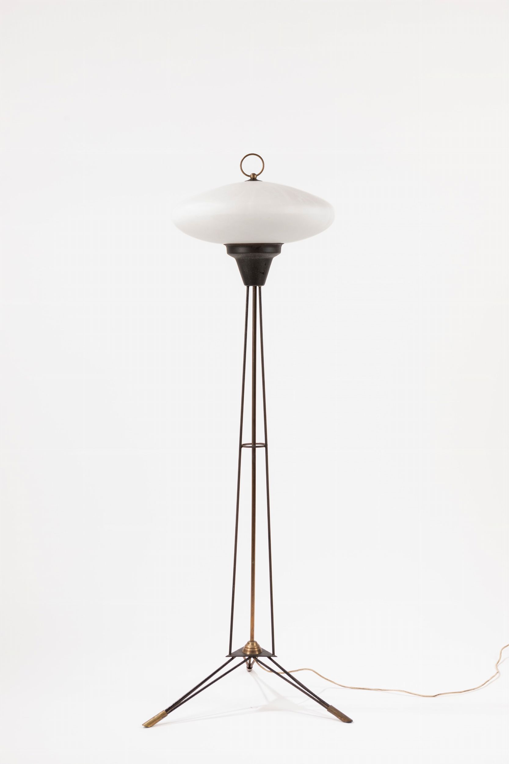 1950 ca. in metallo verniciato, ottone e vetro opalino.