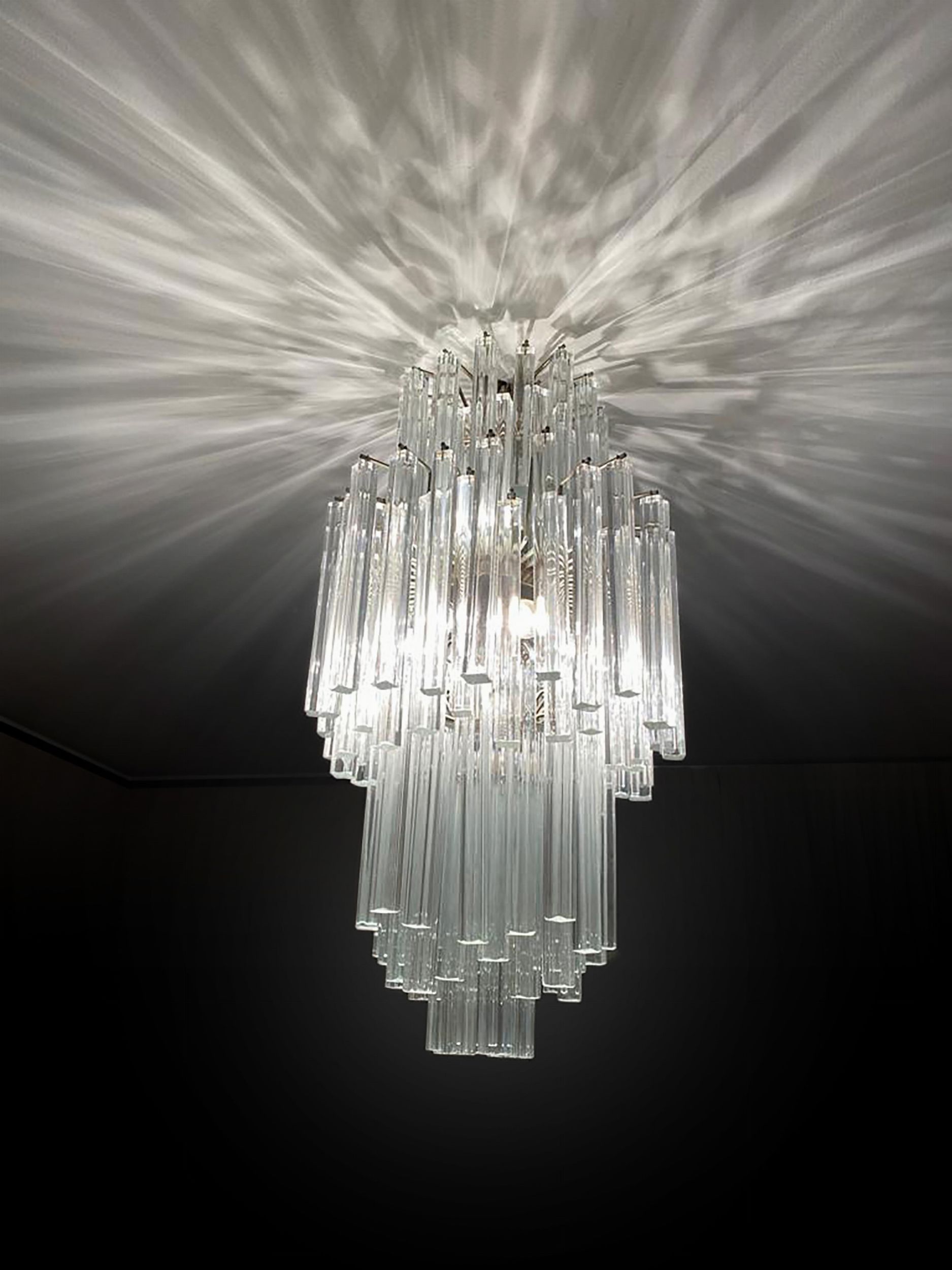 1960 ca. Lampadario in vetro cristallo. Struttura in metallo.