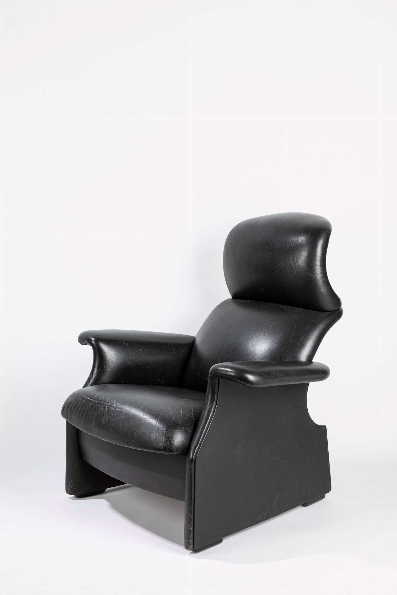 1959 poltrona con struttura composta da elementi in legno collegati da bulloni. Rivestimenti in pelle.Produzione Gavina.