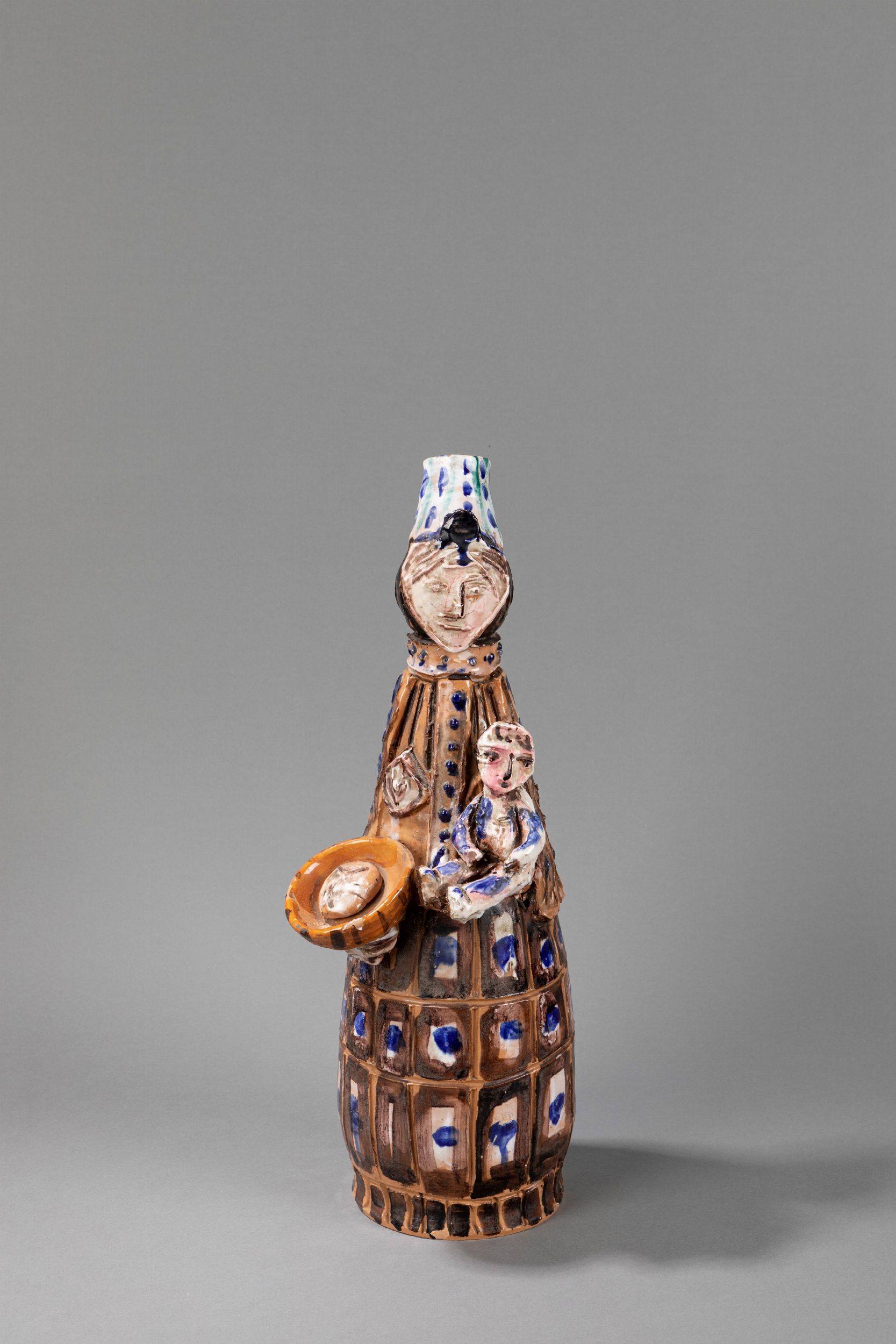 1950 ca. raffigurante un soggetto femminile in ceramica graffita e dipinta.