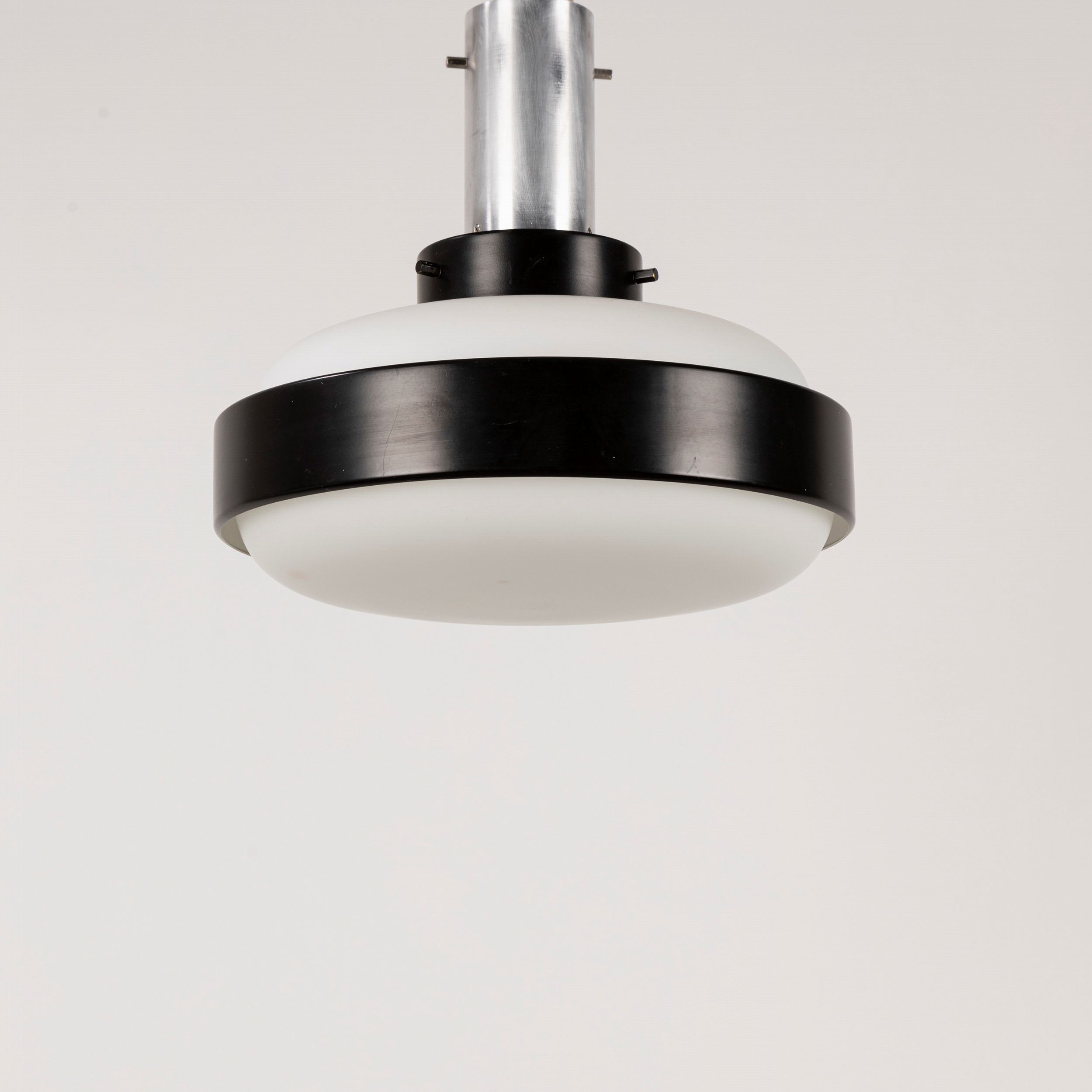 1950 ca. in vetro satinato, metallo e metallo verniciato. Etichetta originale.