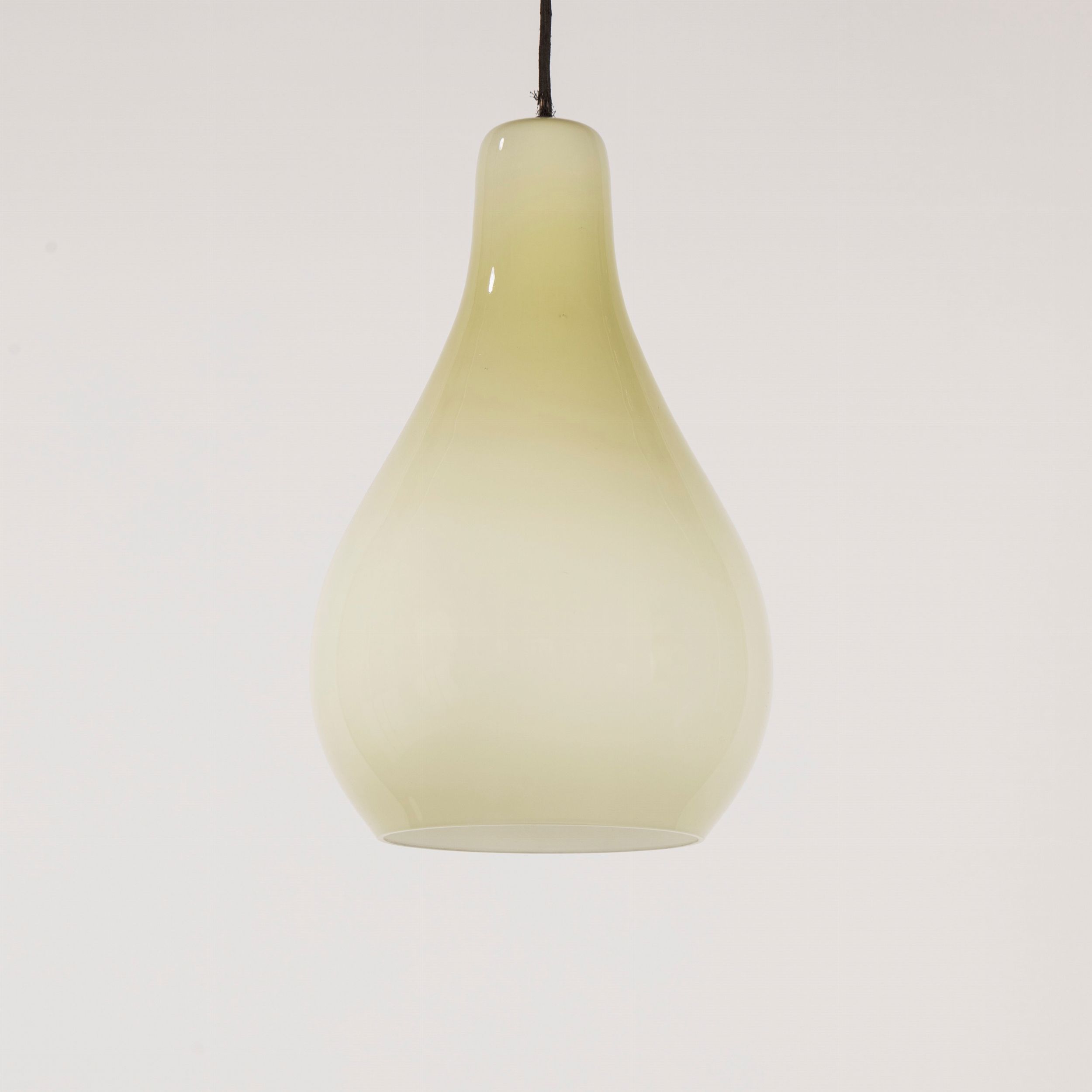 1960 ca. con struttura in metallo e diffusore in vetro incamiciato color panna.