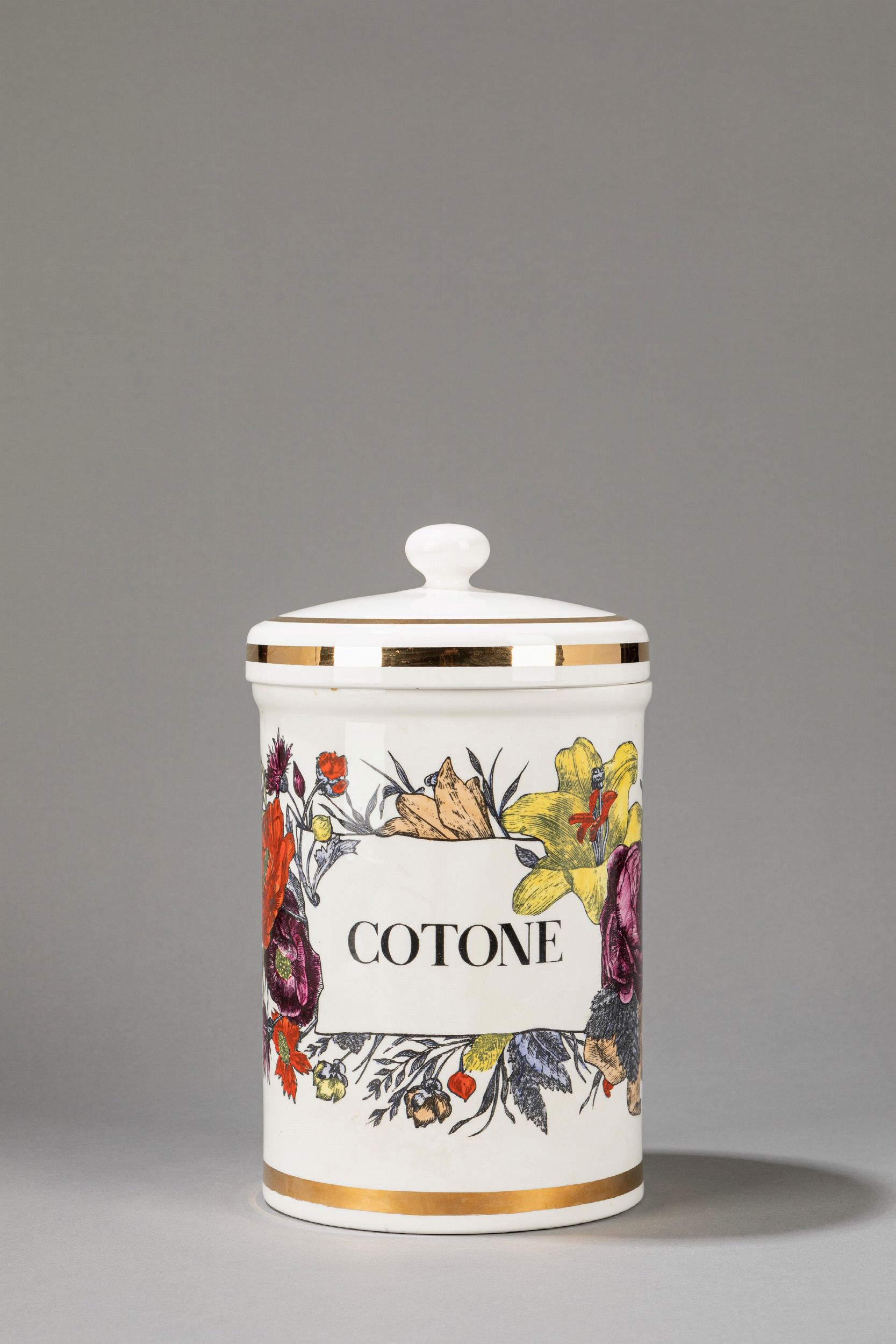 1960 ca. in ceramica con decoro floreale. Marchio sotto la base.