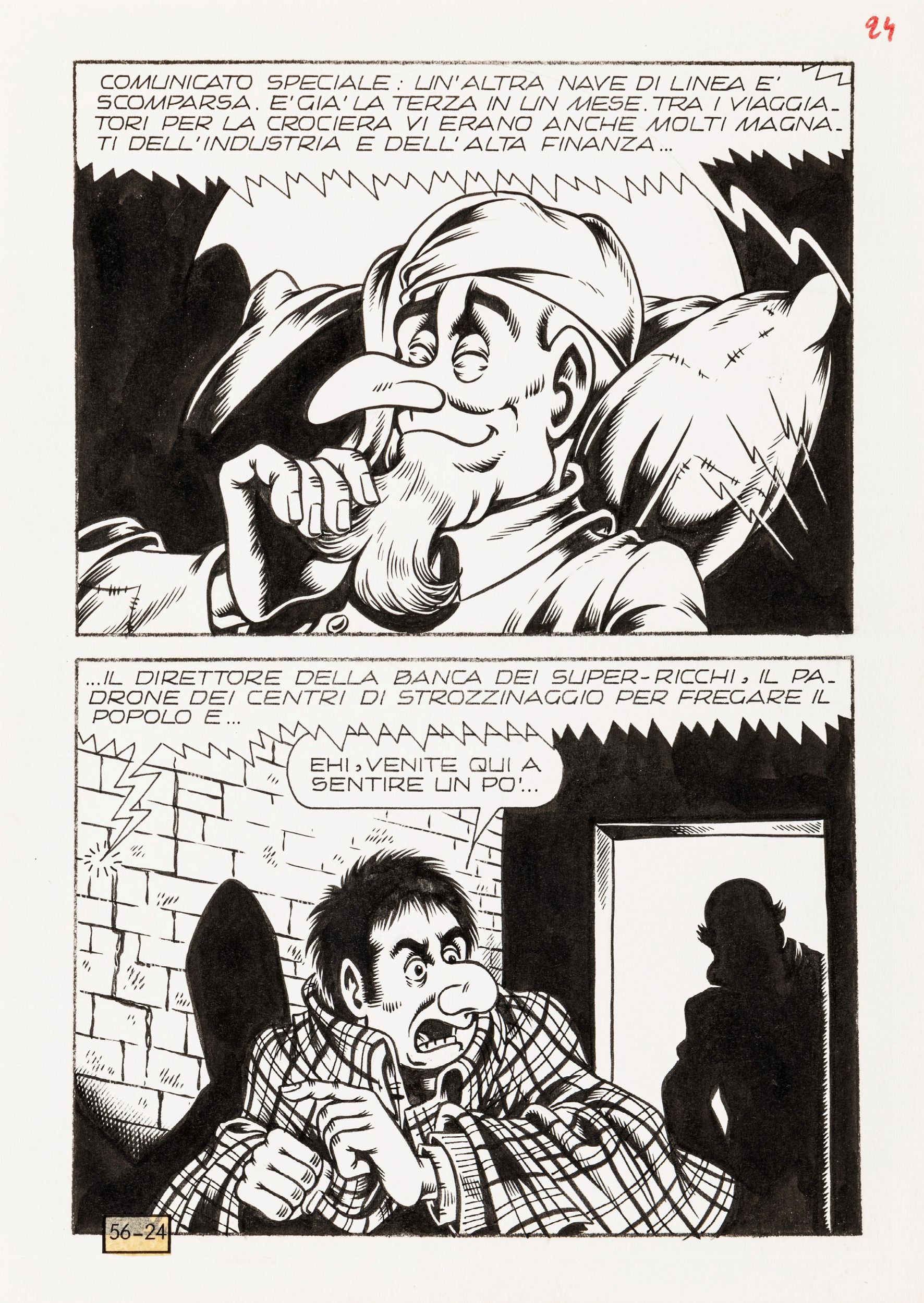 1974 Tavola originale realizzata da Magnus per Vuoi venire in crociera con me?, edita su Alan Ford n. 56 a pag. 24 dall´Editoriale Corno nel 1974.