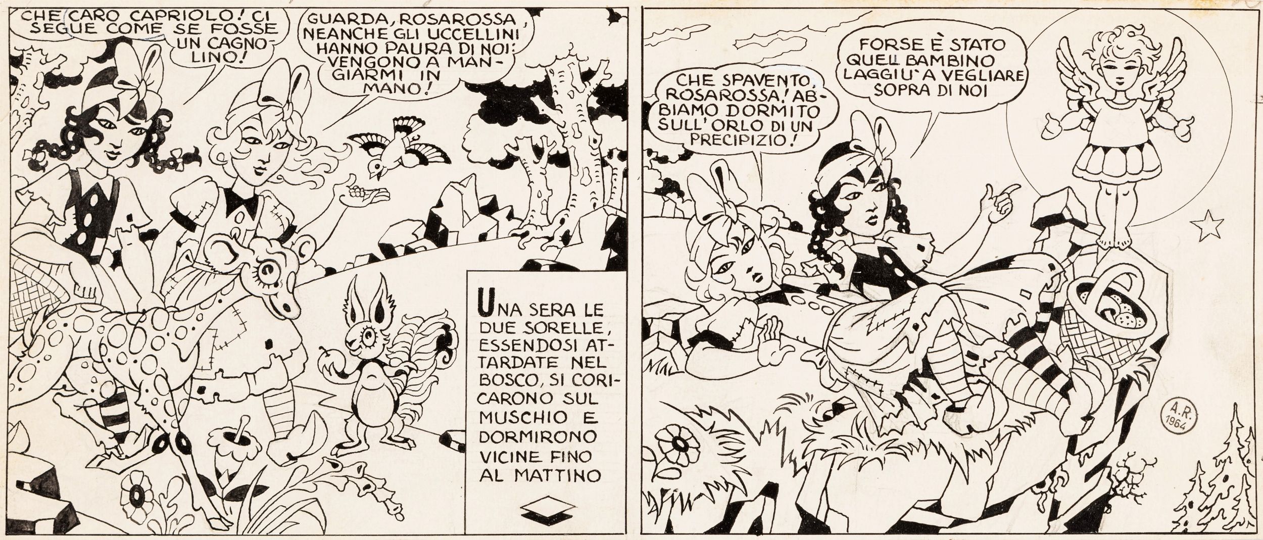 1930/1931 Frammento di tavola originale realizzata da Rubino tra il 1930 e il 1931 per Biancarosa e Rosarossa, pubblicata probabilmente sulla rivista Mondo Bambino.