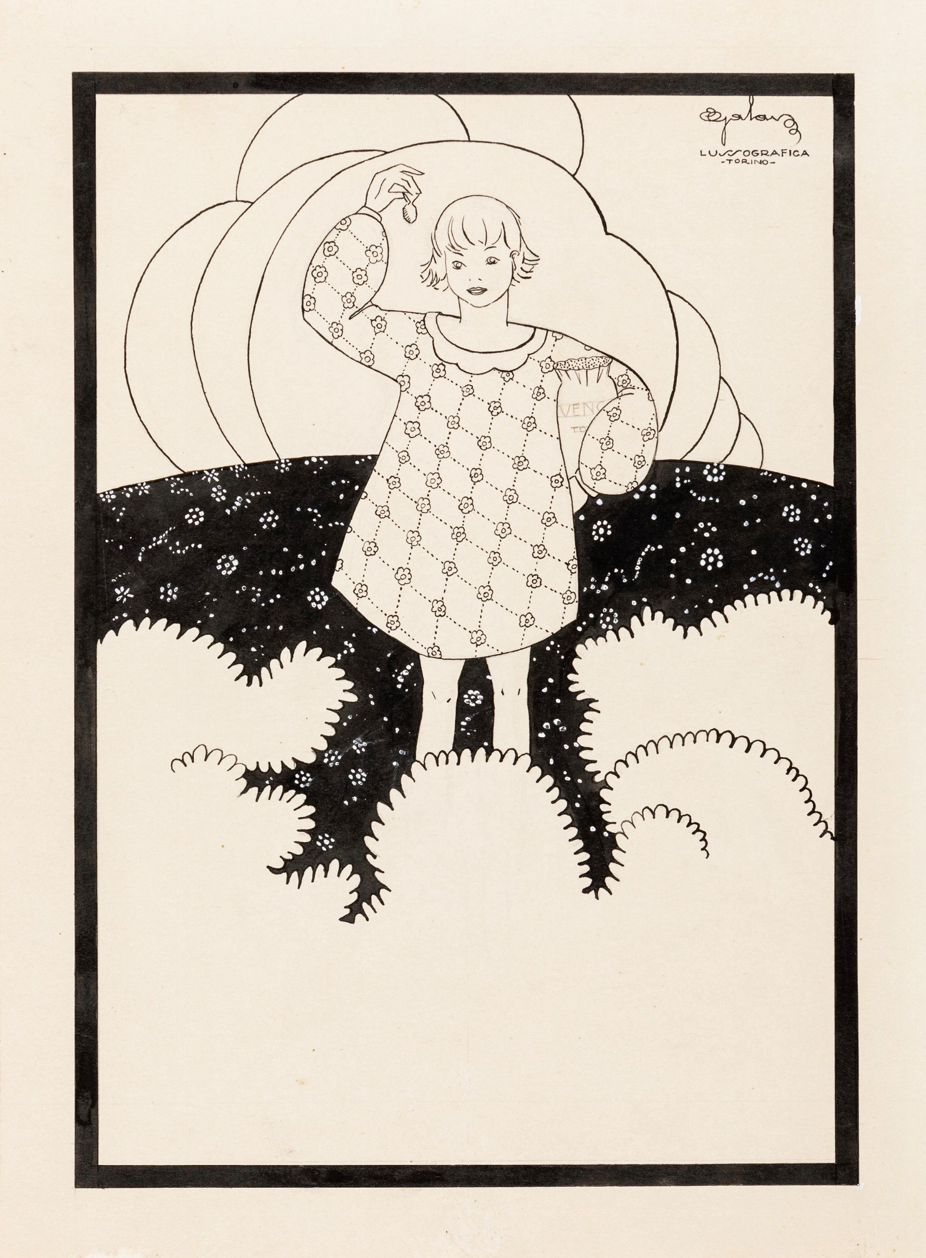 anni '30 Illustrazione originale realizzata da Galaverna durante gli anni '30 per un affisso pubblicitario delle caramelle Venchi di Torino. Firmata.