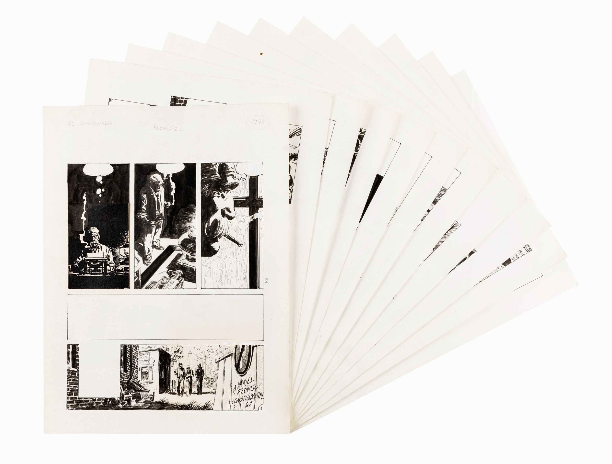 1981 Storia completa composta da 14 tavole originali realizzate da Mandrafina per Después, trentatreesima avventura della saga Cayenna (El condenado) edita per la prima volta in Argentina sulle pagine di Skorpio Gran Color n. 75 nel 1981. Testi di Guillermo Saccomanno. Firmata da entrambi gli autori e datata in ultima pagina.