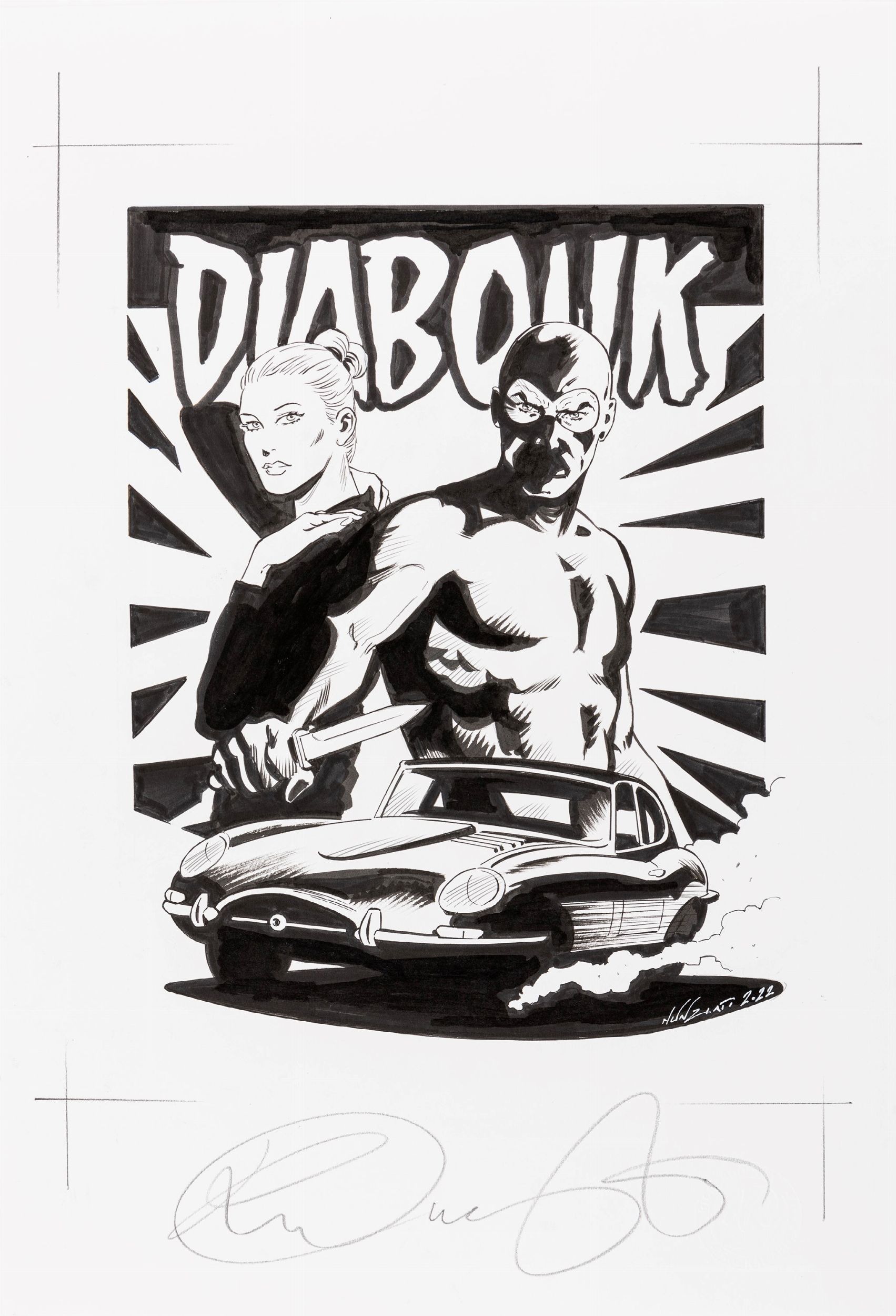 matita e china su cartoncino, 33 x 48 cm 2022 Illustrazione originale realizzata da Nunziati per una litografia ufficiale Astorina pubblicata in occasione della manifestazione Varchi Comics tenutasi a Montevarchi nel 2022. Firmata e datata con timbro a secco dell'autore.
