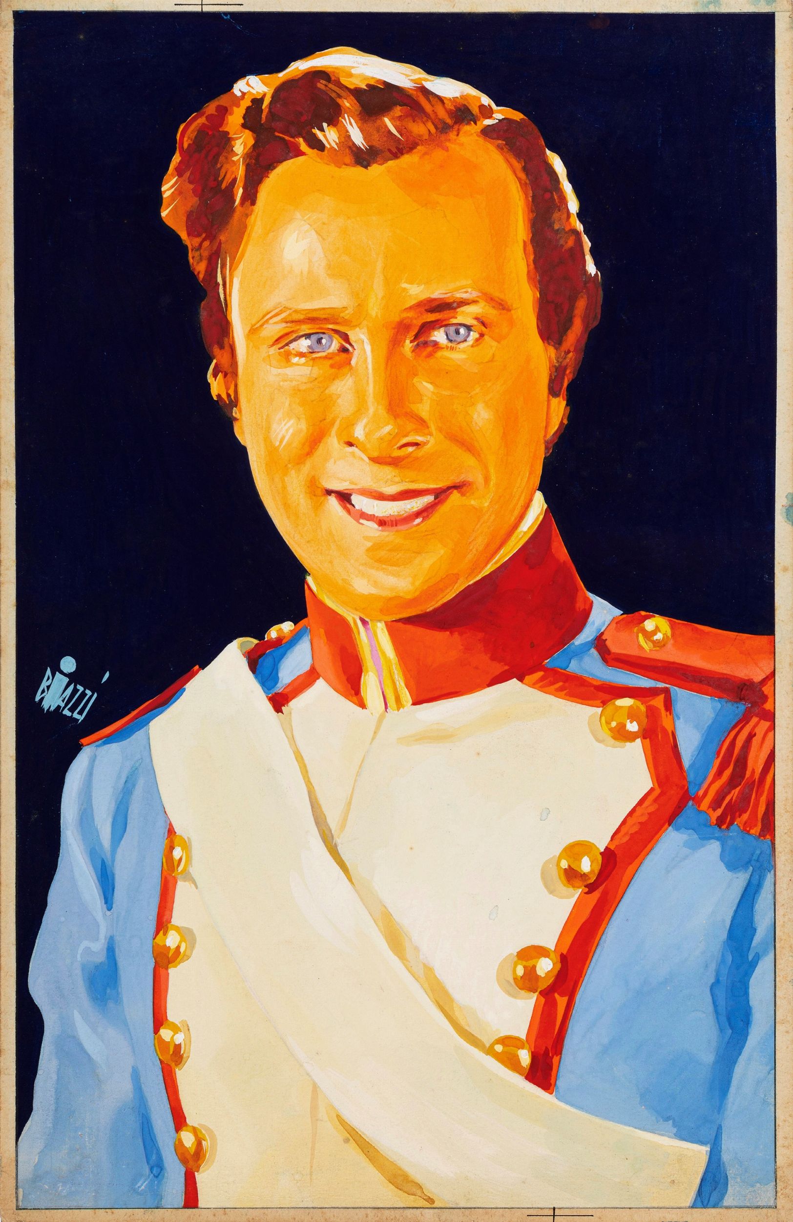 1939 Bozzetto originale realizzato da Biazzi raffigurante l'attore Elio Steiner per la brochure ufficiale del film Le educande di Saint-Cyr, diretto da Gennaro Righelli nel 1939. Firmato.