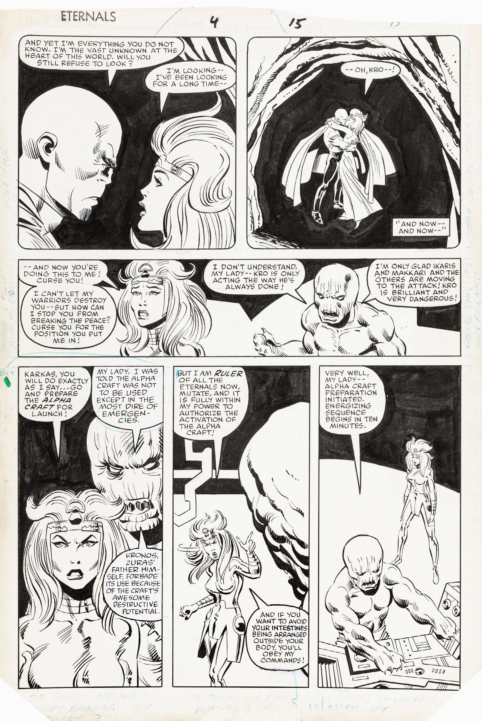 1986 Tavola originale realizzata da Buscema per Masked Gods!, edita su Eternals n. 4 a pag. 15 dalla Marvel nel 1986.