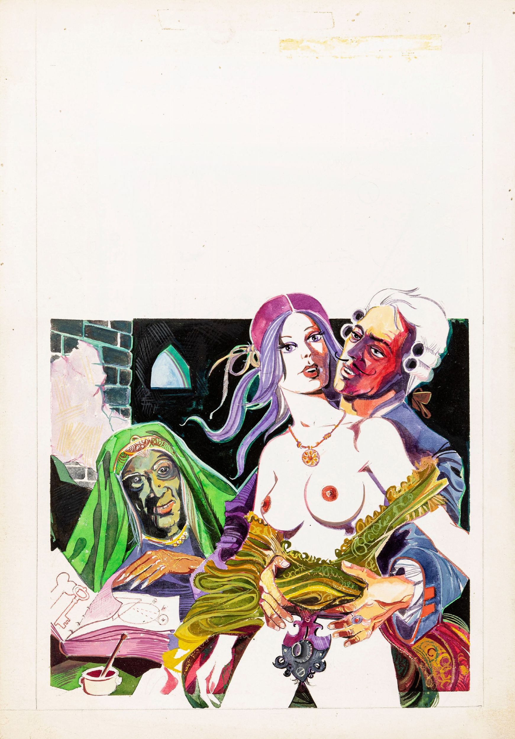 1975 Originale di copertina realizzato da Rostagno per Dolce e perversa, edito su Fior di Neve n. 1 dalla Edinational nel 1975.
