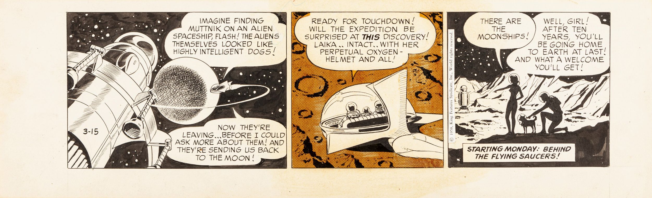 15/03/1958 Striscia giornaliera del 15/03/1958 per Flash Gordon. Striscia conclusiva dell'arco narrativo intitolato The Far Side of the Moon.