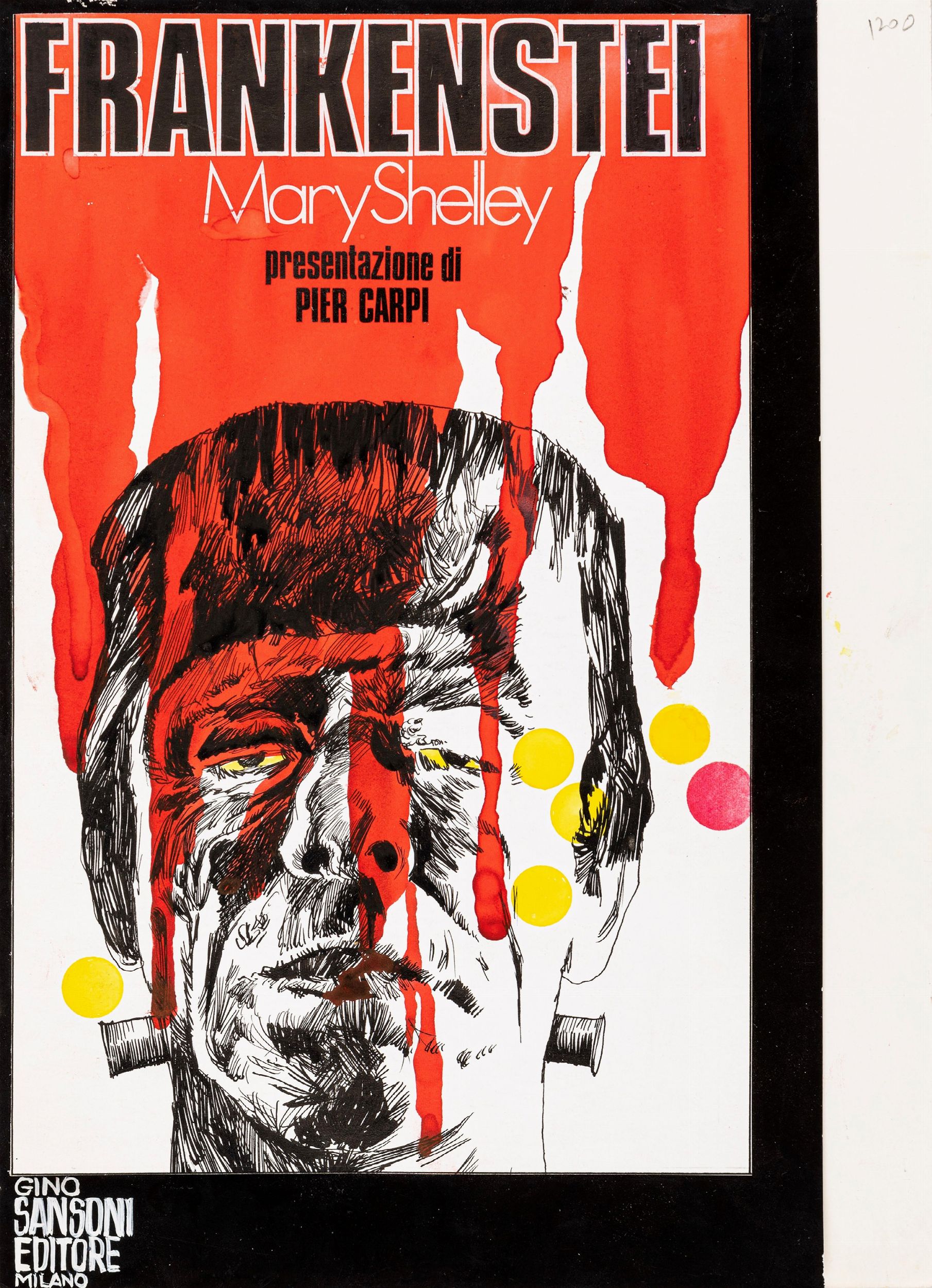 1970 Originale di copertina realizzato da Rostagno per il romanzo Frankenstein di Mary Shelley, edito nella collana Il Mistero n. 2 dalla Sansoni Editore nel 1970.