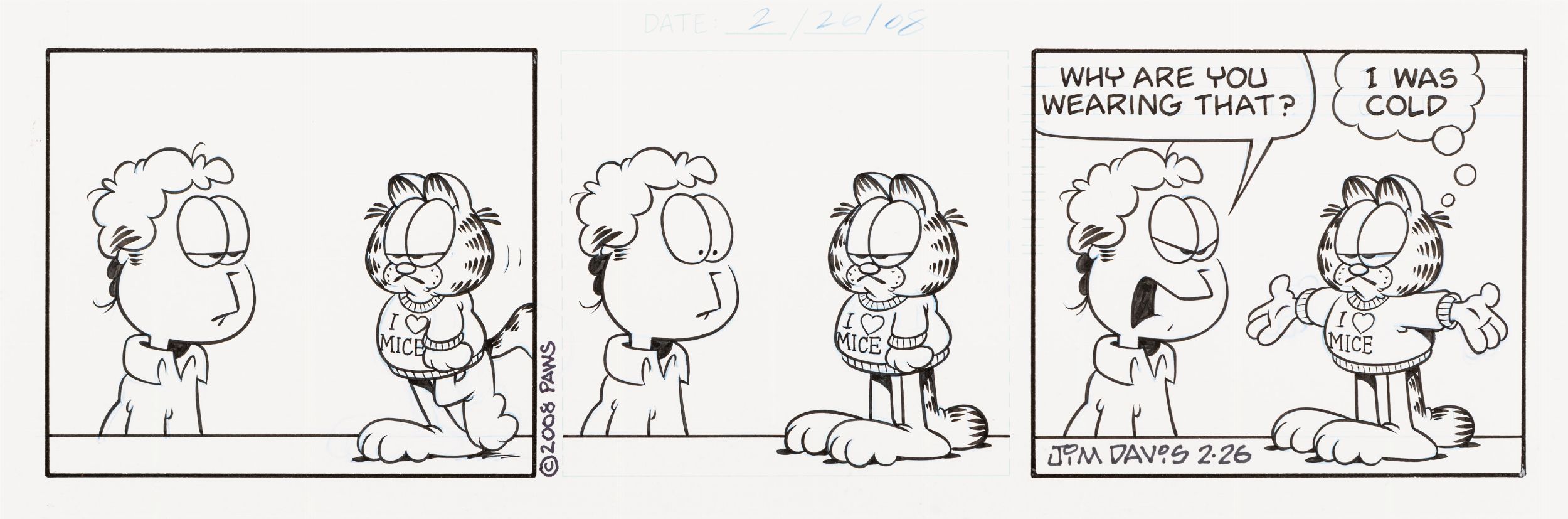 26/02/2008 Striscia giornaliera del 26/02/2008 per Garfield. Firmata e datata.