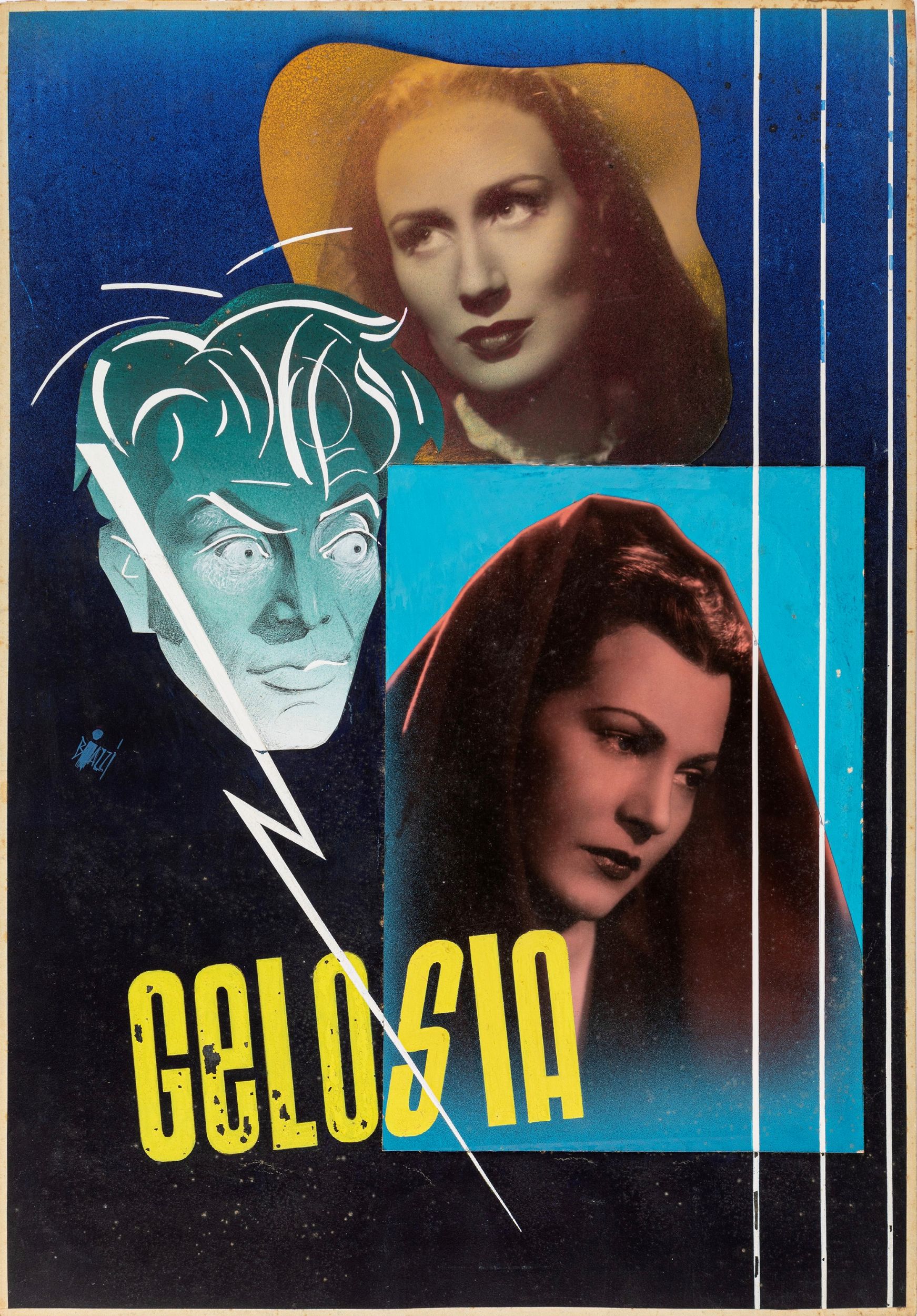1942 Bozzetto originale realizzato da Biazzi per la locandina ufficiale del film Gelosia, diretto da Ferdinando Maria Poggioli con Roldano Lupi, Luisa Ferida e Elena Zareschi nel 1942. Firmato.