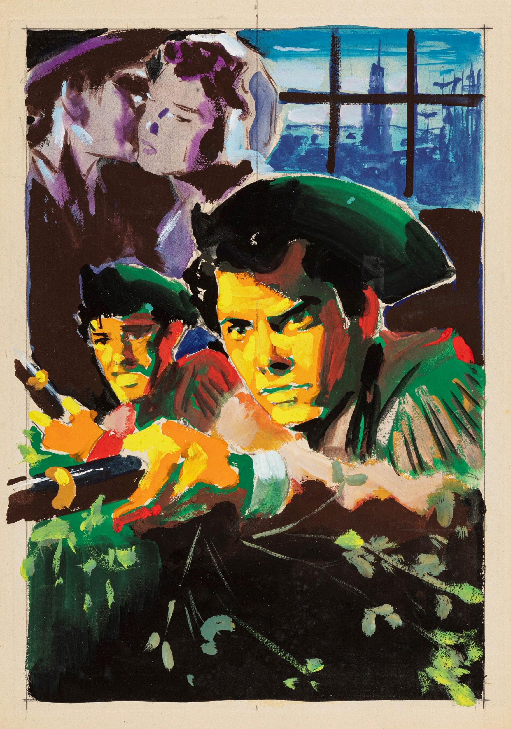 1958 Bozzetto preliminare realizzato da Olivetti per la locandina del film I bucanieri, diretto da Anthony Quinn con Yul Brynner, Claire Bloom e Charles Boyer nel 1958.