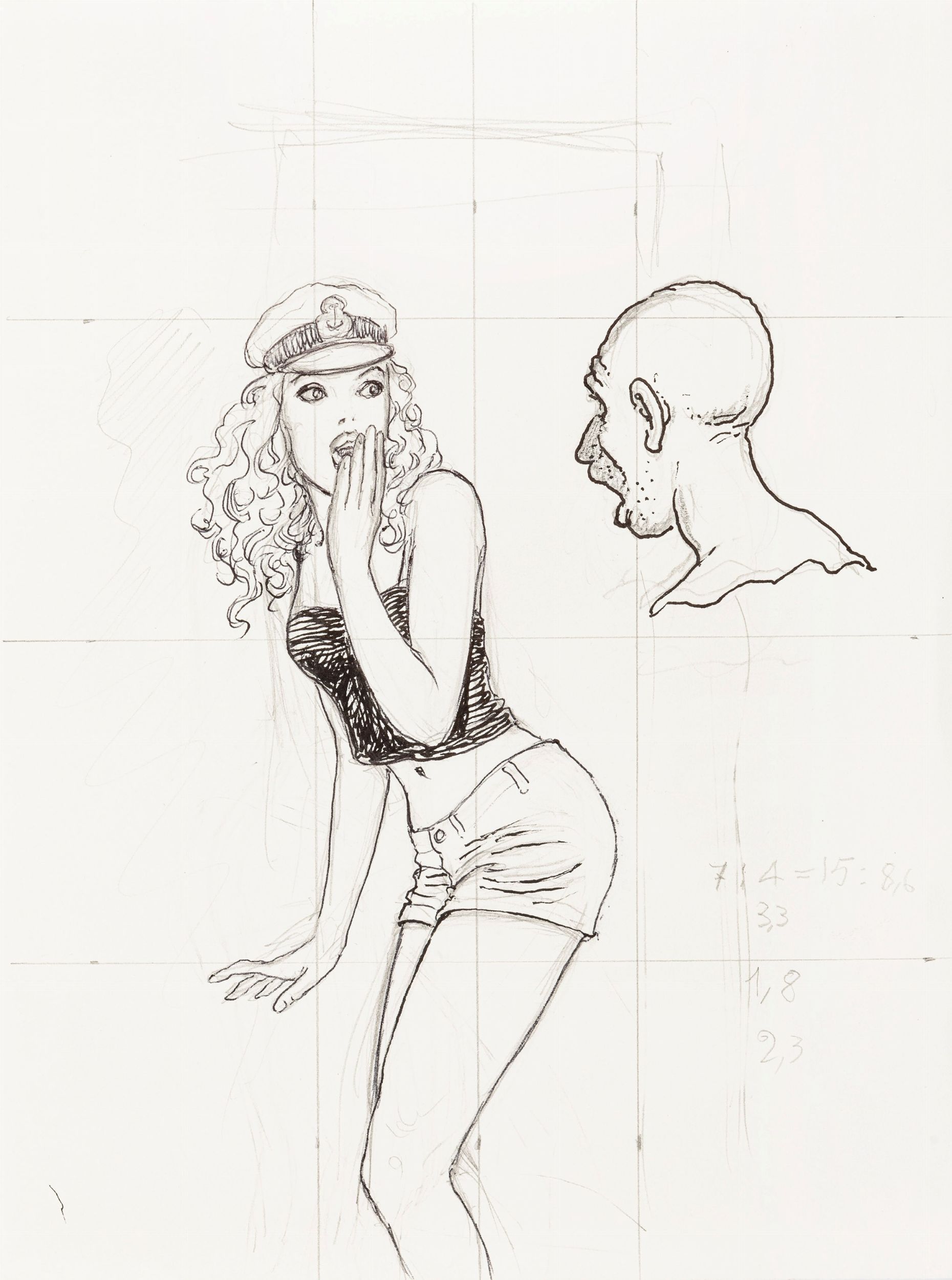 matita e china su carta, 21 x 28 cm 2021 Preliminare di copertina realizzato da Manara per la ristampa della sua più celebre opera Il profumo dell‘invisibile, volume edito dalla Panini nel 2021. Pubblicato per la prima volta in Francia nel 1986 Il profumo dell'invisibile sancì il debutto e l'enorme successo della seducente protagonista Miele e del suo creatore, da allora considerato il più grande maestro dell'erotismo a livello mondiale.