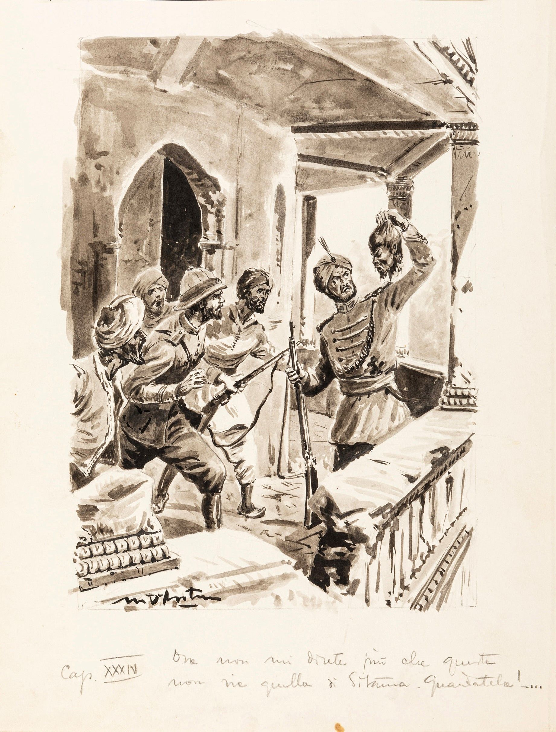 1947 Illustrazione originale realizzata da D'Antona per il romanzo La montagna di luce di Emilio Salgari, edito da Viglongo nel 1947. Firmata.