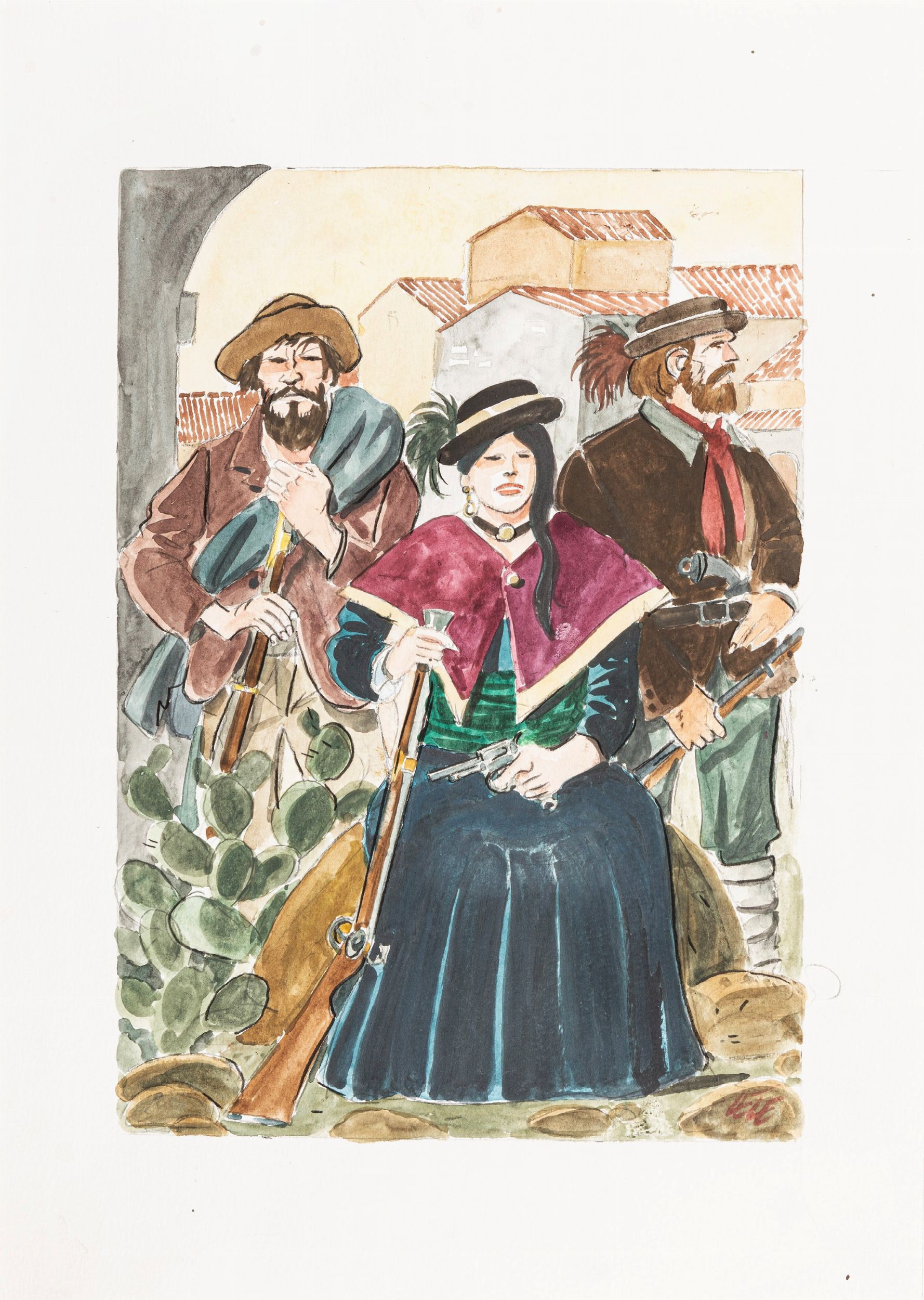 matita, acquerello e tempera su cartoncino, 30 x 42 cm 2016 Illustrazione originale realizzata da Vianello per il volume L'anello di zinco, romanzo storico ambientato nel Regno delle Due Sicilie nel periodo del brigantaggio postunitario, edito dalle Edizioni Segni d'Autore nel 2016. Firmata.