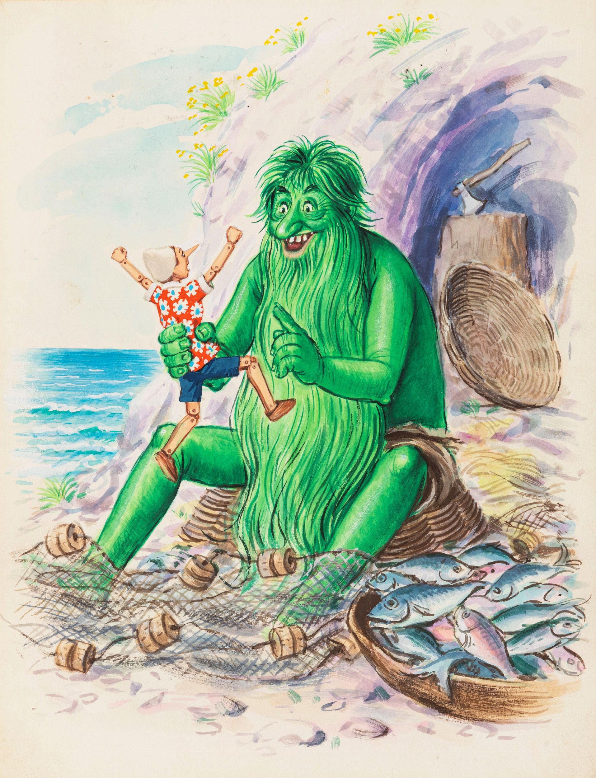1965 Illustrazione originale realizzata da Baita per Le avventure di Pinocchio, edita dall'Editrice Capitol nel 1965.