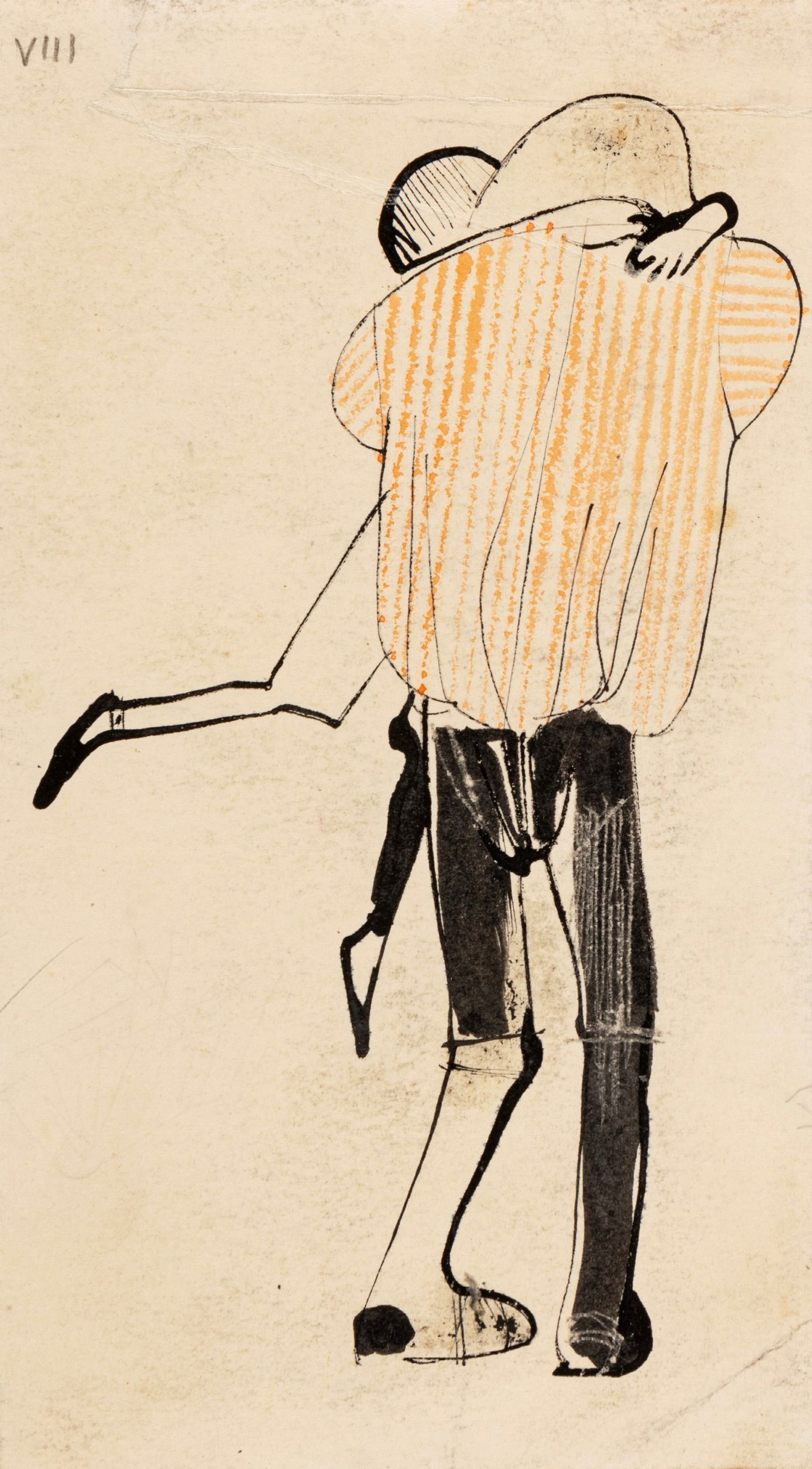 matita, china e tempera su cartoncino, 12,5 x 23 cm 1961 Illustrazione originale realizzata da Golpe per la sua celebre interpretazione de Le avventure di Pinocchio, edita nel capitolo VIII a pag. 56 dalle Edizioni A.M.Z. nel 1980. Pieghe e piccolo strappo al margine superiore.