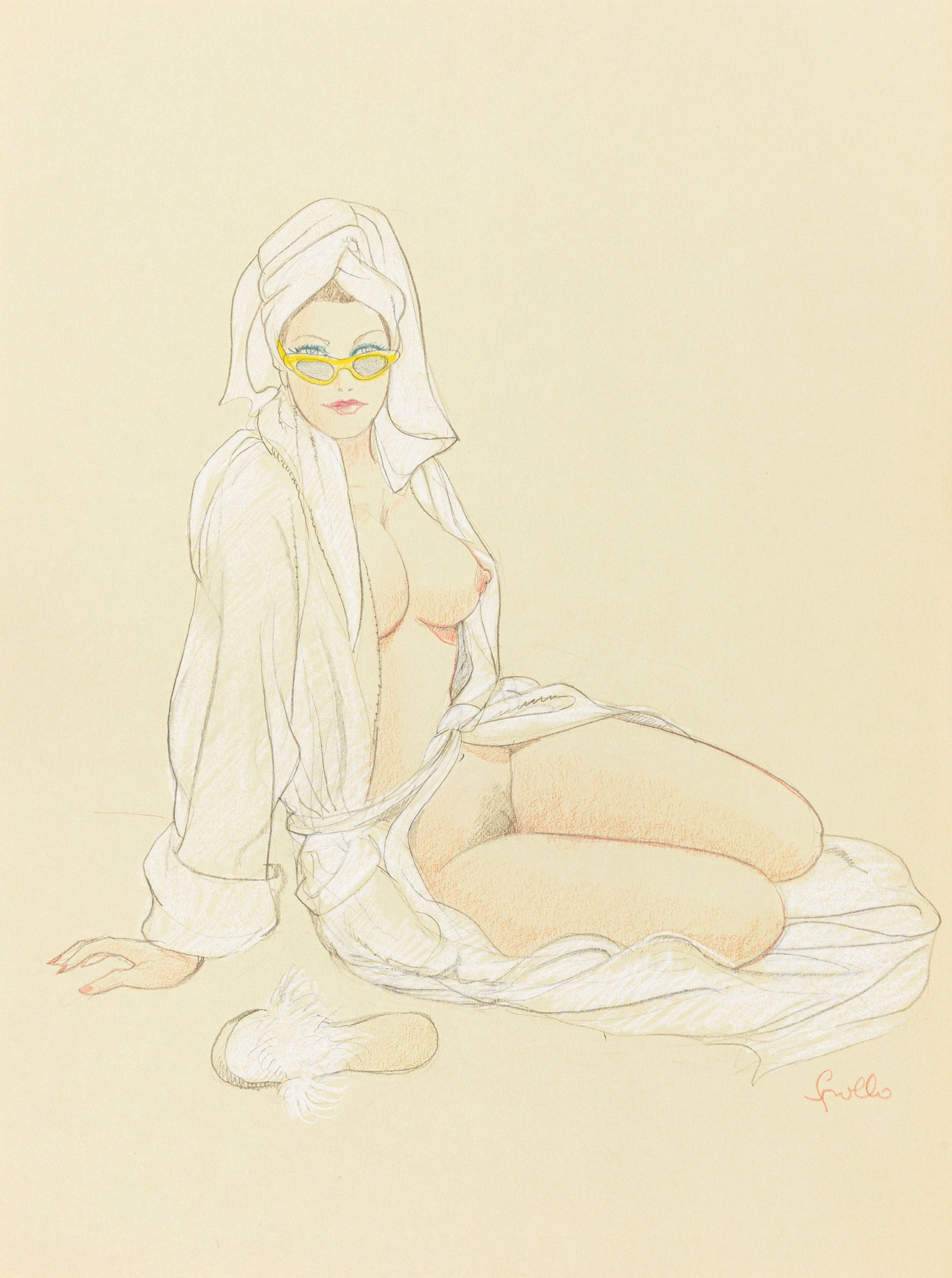 matita e pastelli su cartoncino beige, 24,5 x 33 cm