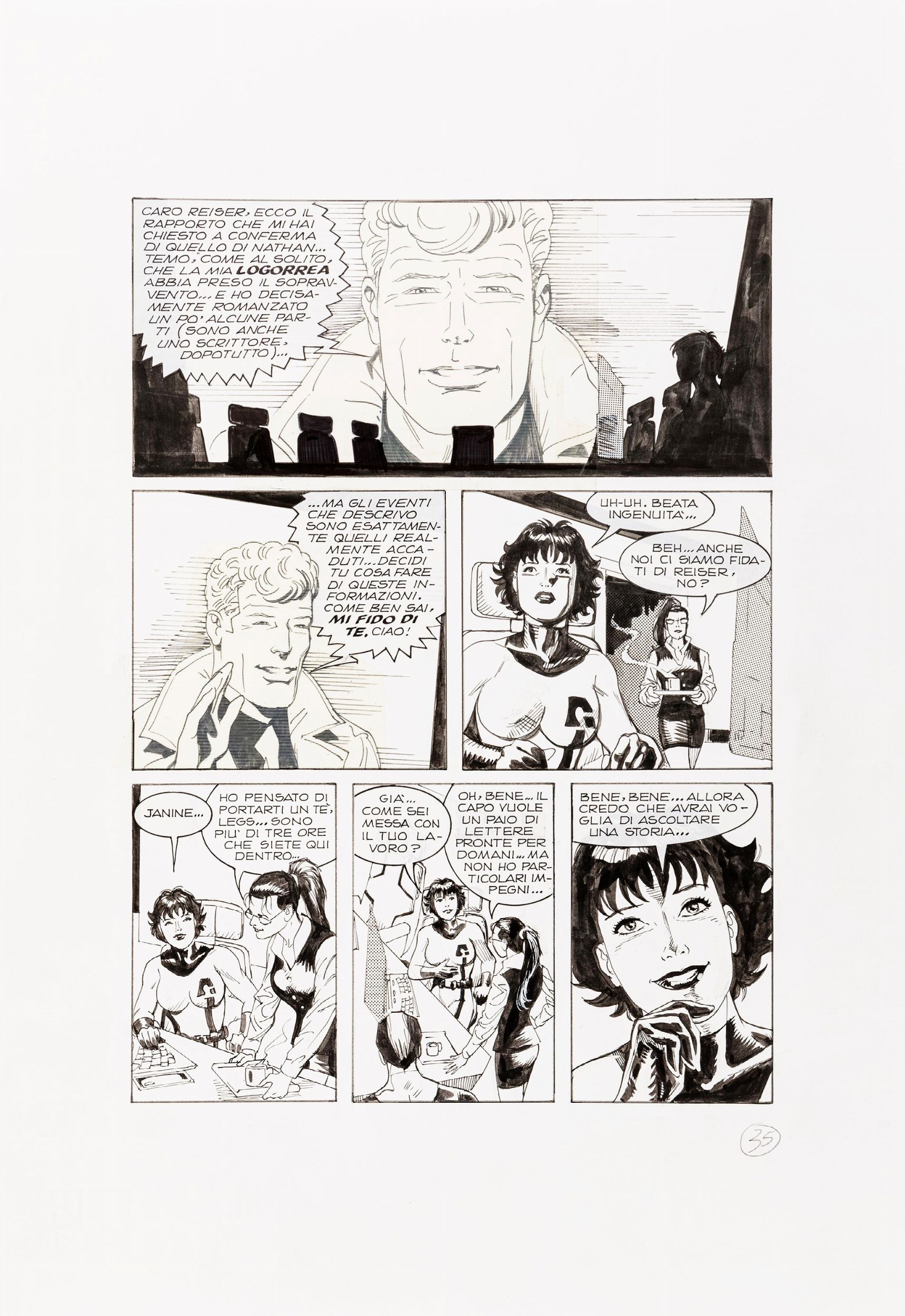 matita, china e retino su cartoncino, 33 x 48 cm 2001 Tavola originale realizzata da Vercelli per Il segreto di Altrove edita su Martin Mystère & Nathan Never n. 2 a pag. 35 dalla Bonelli nel 2001.