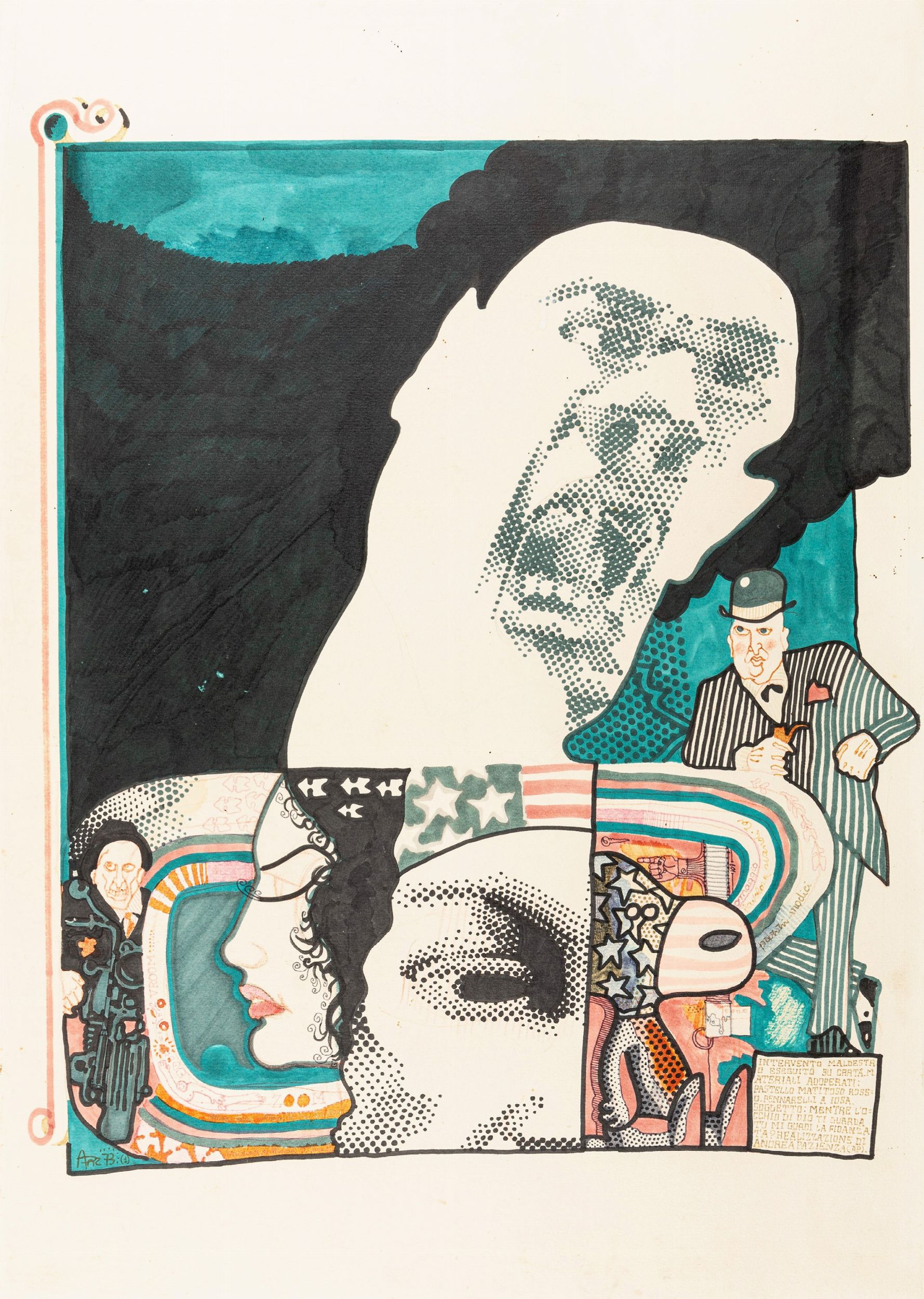 matita, pastelli e pennarelli su cartoncino, 48 x 68 cm 1973 Dipinto realizzato da Pazienza in occasione della sua prima esposizione personale tenutasi a Pescara presso la Galleria Convergenze nel 1975. La presente opera titolata Mentre l'occhio di Dio ti guarda tu mi guardi la fidanzata? fu pubblicata per la prima volta sul catalogo della mostra Storia di una convergenza edito a Pescara nel 1975 e recentemente nel volume Convergenze a pag. 48 nella collana Tutto Pazienza n. 13 dalla Fandango Libri nel 2016. Un’opera dal valore museale, incarnazione di un fondamentale capitolo nello sviluppo artistico di Pazienza. Firmata, datata e titolata. « Prima di fare fumetti dipingevo quadri di denuncia. Ma i mie quadri venivano comprati da farmacisti che se li mettevano in camera da letto. Il fatto che il quadro continuasse a pulsare in quell’ambiente mi sembrava, oltre che una contraddizione, anche un limite enorme. » (Andrea Pazienza).