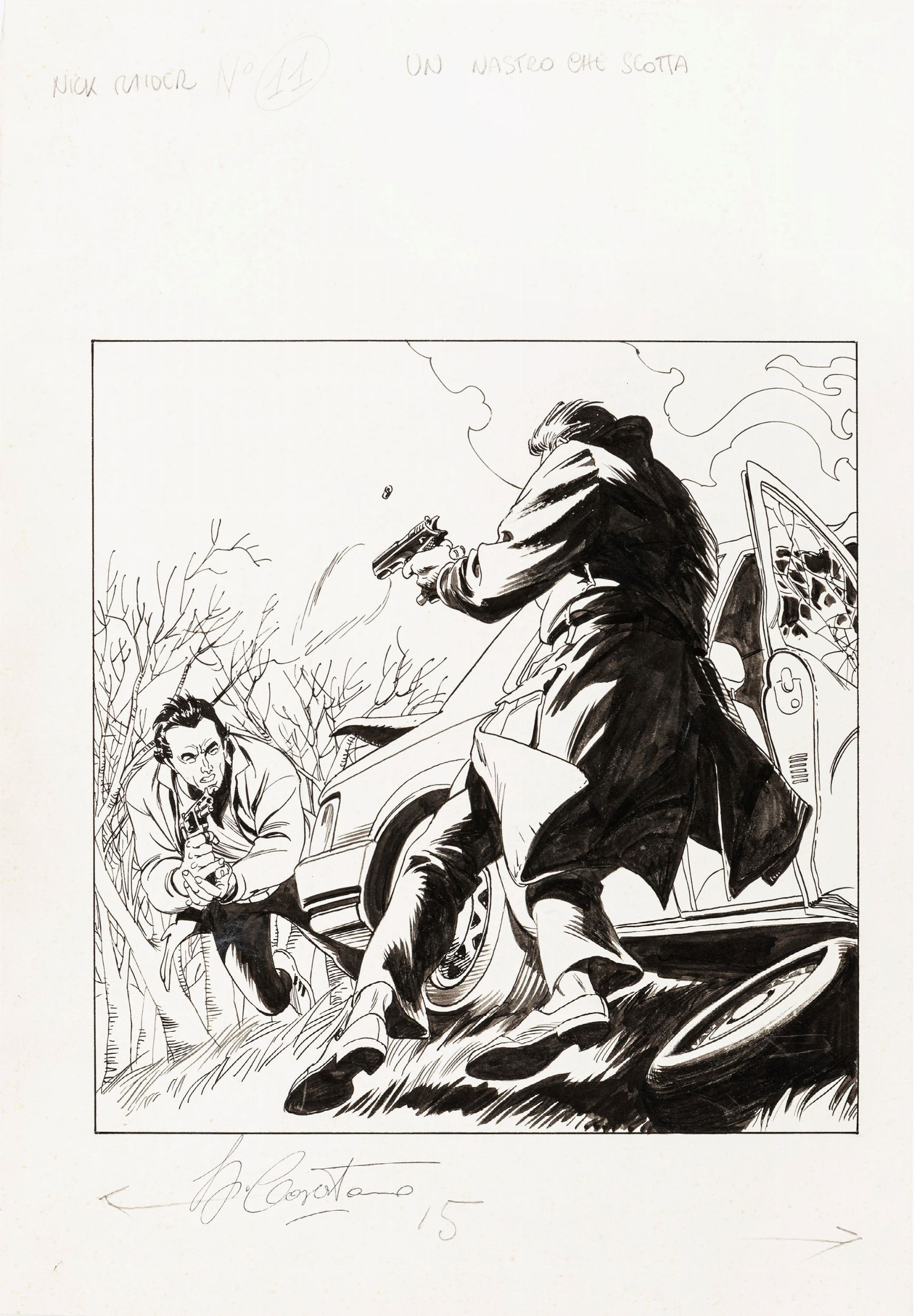 1989 Originale di copertina realizzato da Casertano per Un nastro che scotta, edito su Nick Raider n. 11 dalla Bonelli nel 1989. Firmato.