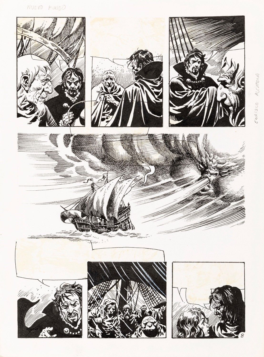 1986 Lotto composto da 5 tavole originali realizzate da Alcatena per Nuoevo Mundo, pagg. 2, 7, 8, 10 e 12 di questa avventura scritta da Alfredo Grassi nel 1986. Firmata e datata in ultima pagina.