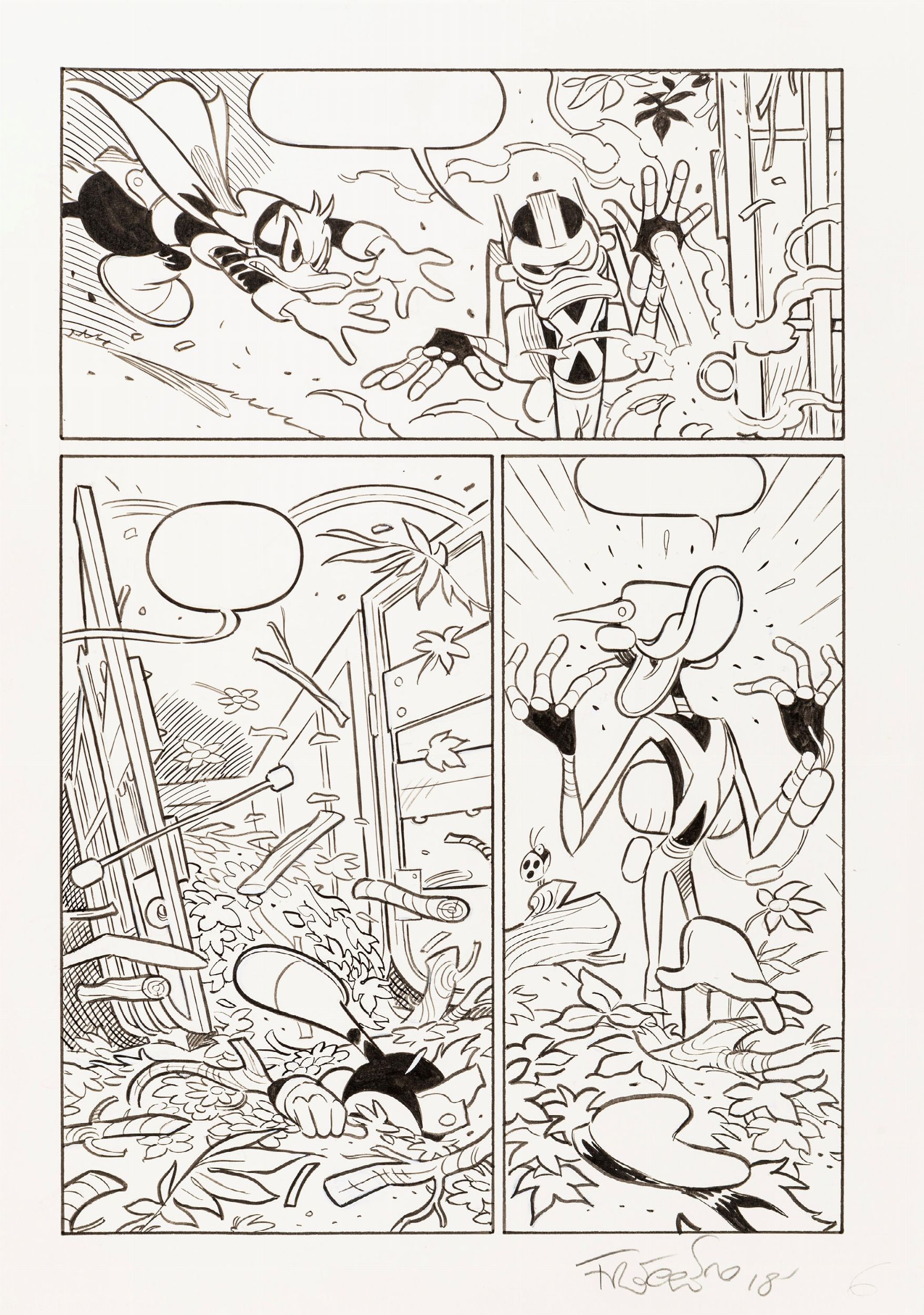 2018 Tavola originale realizzata da Freccero per Paperinik e il raggio sfortunatore, edita in Italia su Paperinik n. 27 a pag. 6 nel 2019. Firmata e datata.