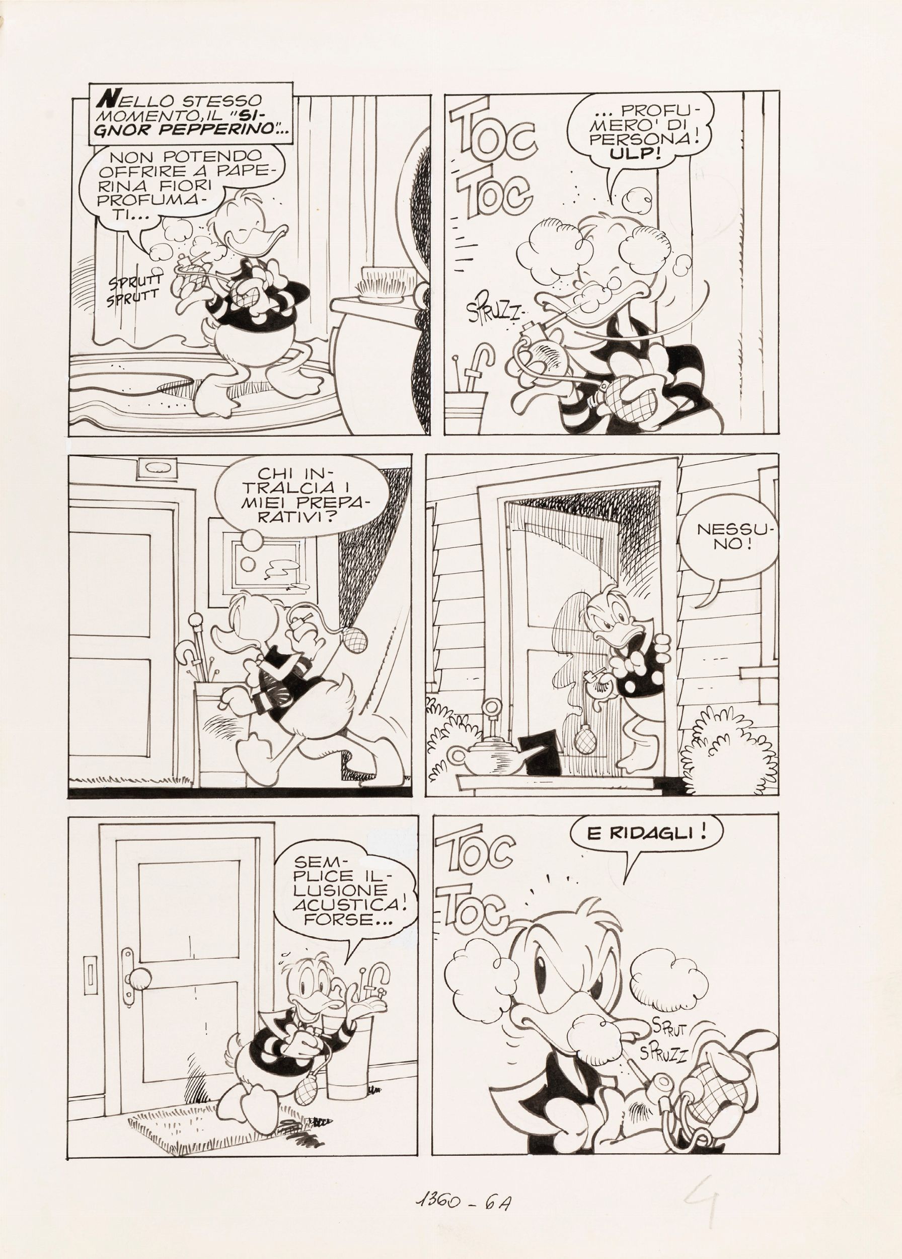 1981 Tavola originale realizzata da Cavazzano per Paperino e il genio maldestro, edita su Topolino n. 1360 a pag. 4 nel Dicembre 1981.