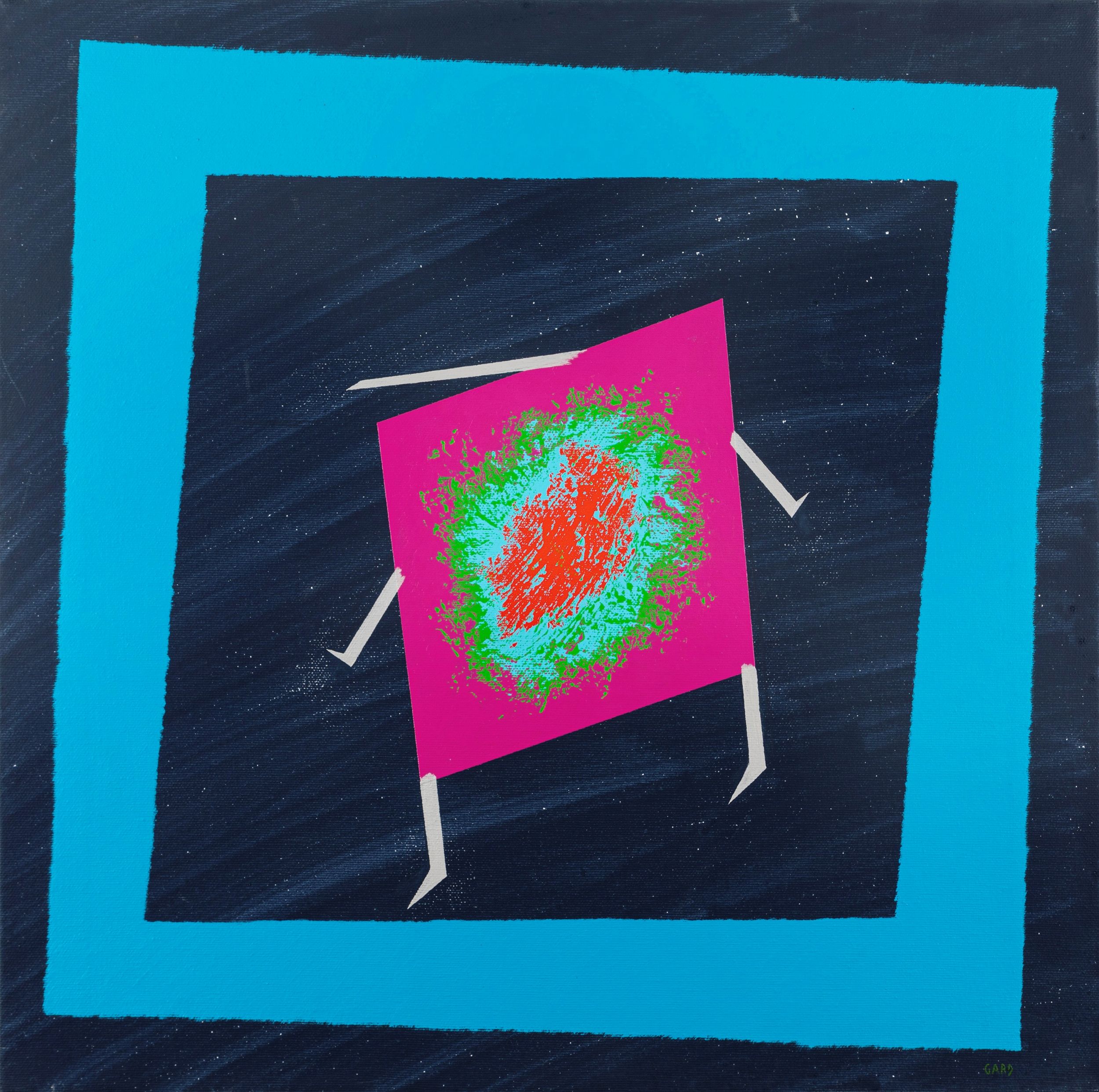 olio su tela, 50 x 50 cm 1998 Dipinto originale realizzato da Gard in occasione della mostra Pinocchio: un naso lungo...il giro del mondo, tenutasi a Bassano del Grappa nel 1998, pubblicata sull'omonimo catalogo a pag. 124 da Arsenale Editrice. Noto esponente della corrente dell'op art, Gard è considerato fra gli artisti storicizzati dell'arte programmata, cinetica e optical che pratica, fra i primi in Italia, dal 1969. Firmato al fronte e al retro.