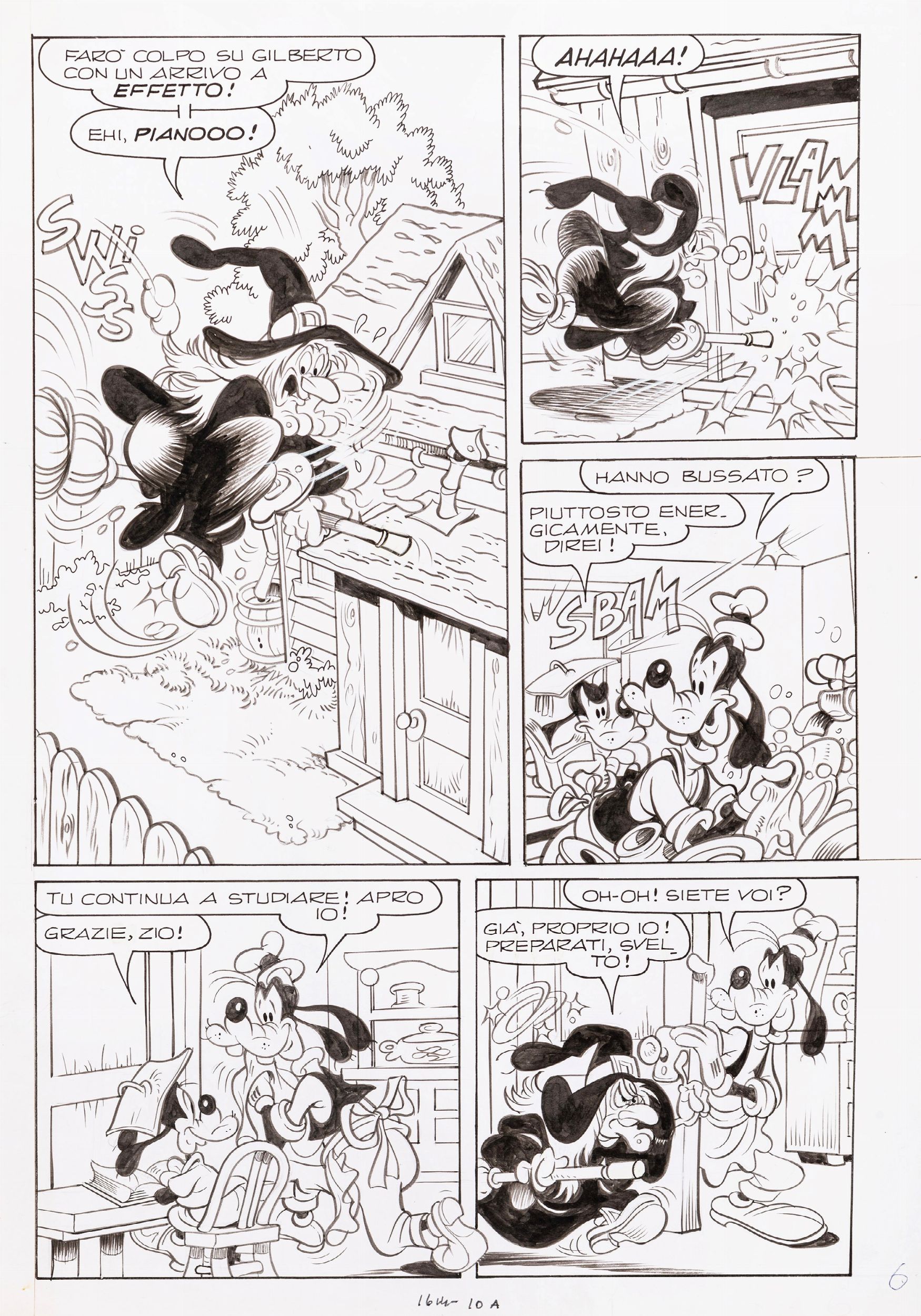 1986 Tavola originale realizzata da Asteriti per Pippo e Nocciola: sfida allŽultima magia, pag. 6 di questa celebre storia a bivi edita su Topolino n. 1614 nel Novembre 1986.