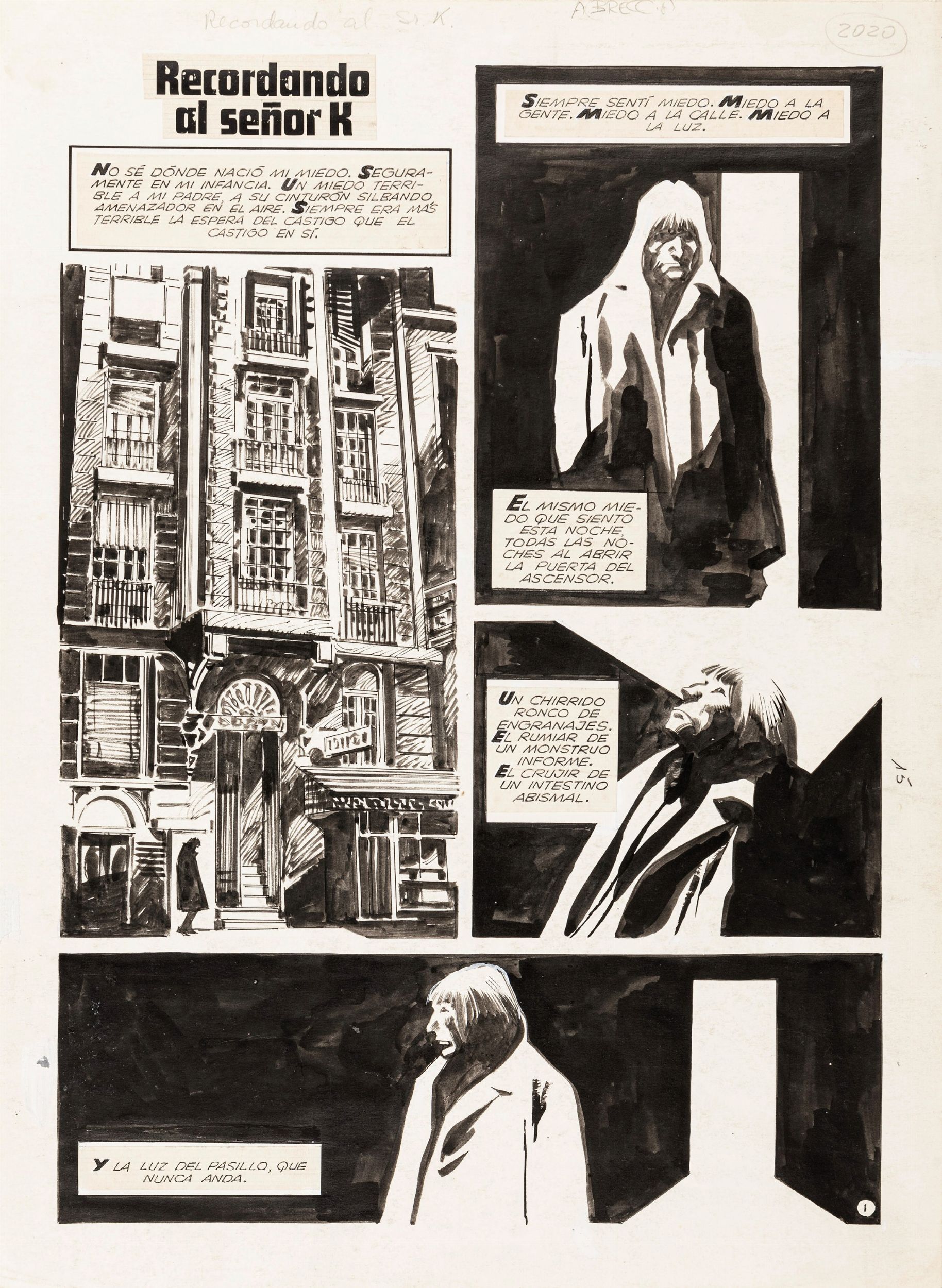 1981 Title page originale realizzata da Breccia per Recordando al senor K, storia pubblicata per la prima volta in Argentina su Skorpio n. 98 dalle Ediciones Record nel 1984. Testi di Guillermo Saccomanno.