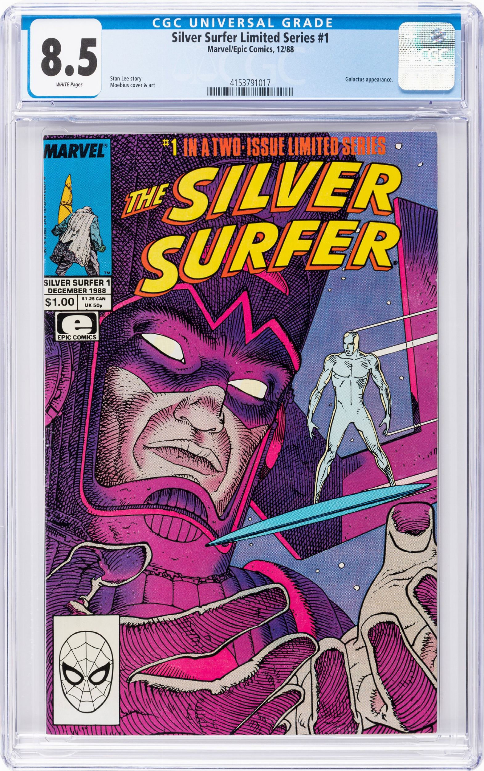 1988 Comic book certificato dalla CGC con un grading 8.5 (CGC Cert # 4153791017), case sigillato e in ottime condizioni. CGC Comments: Galactus appearance.
