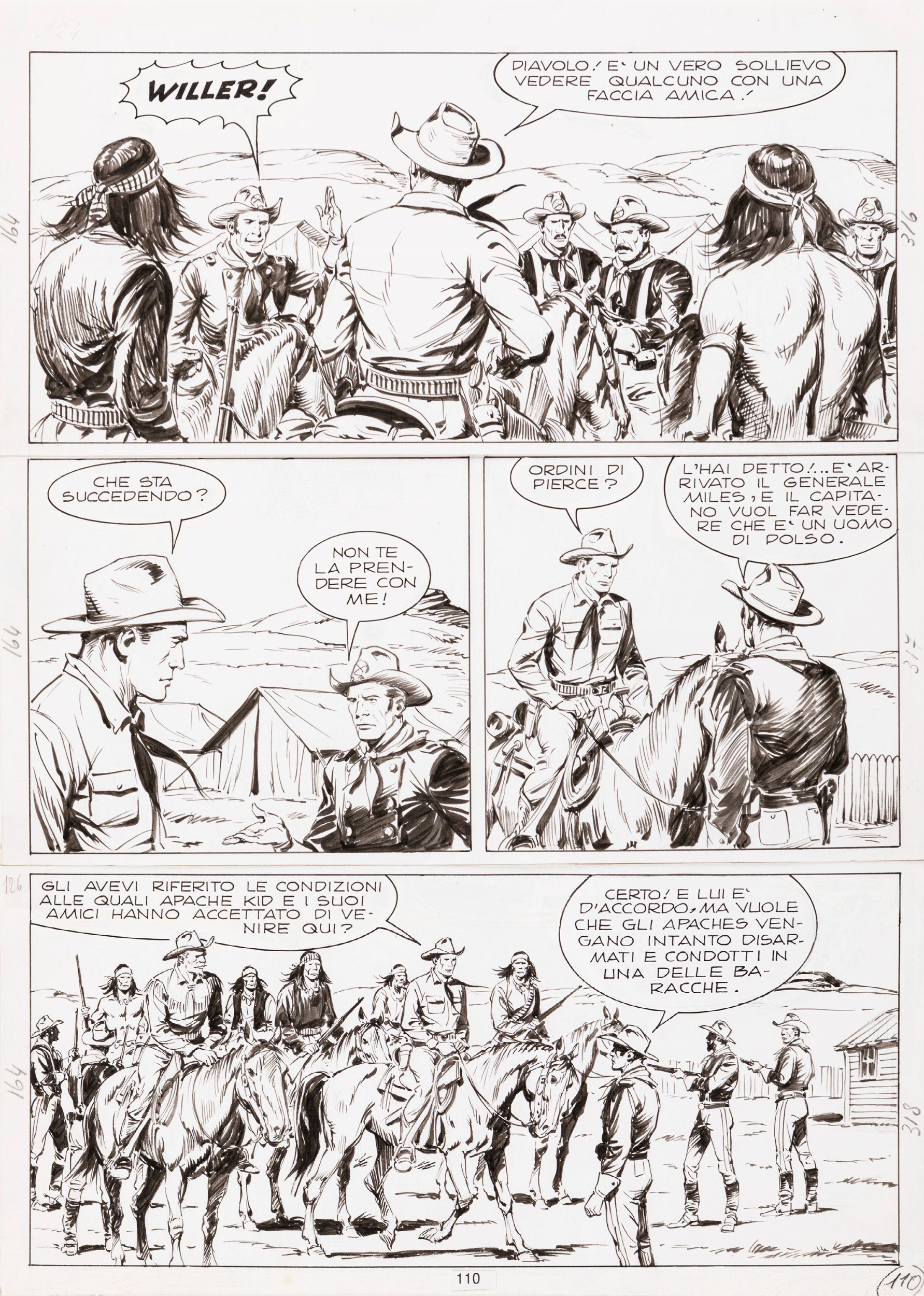 1974 Tavola originale realizzata da Nicoḷ per Apache Kid, edita su Tex n. 165 a pag. 110 dalla Bonelli nel 1974. Su tre pannelli.