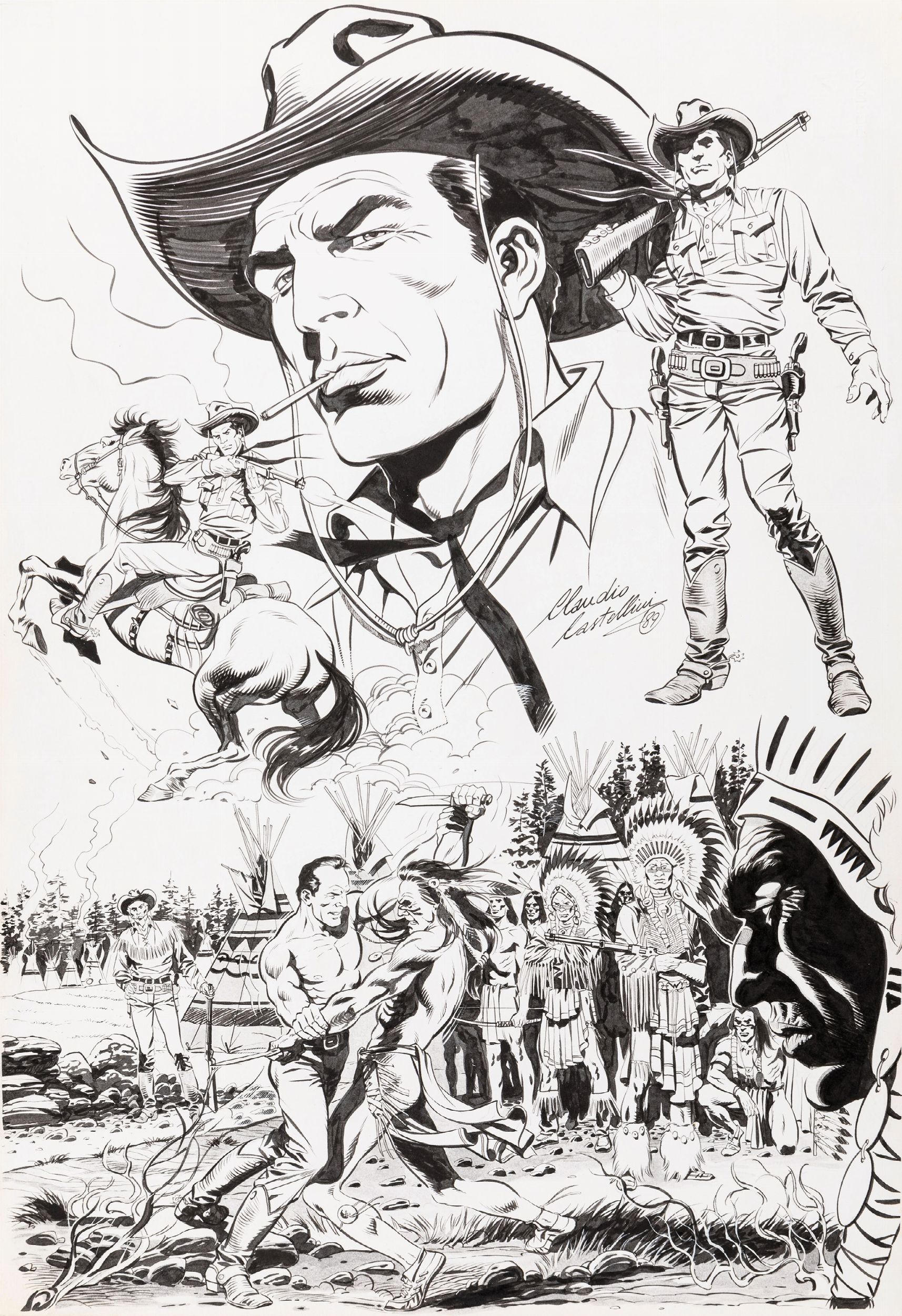 matita, china e acquerello su cartoncino, 33 x 48 cm 1989 Illustrazione originale realizzata da Castellini nel 1989 su richiesta della Bonelli per lo studio grafico di Tex. Nello stesso anno del suo debutto su Dylan Dog n. 30 (La casa infestata) la case editrice milanese chiese alla futura super star del fumetto internazionale di eseguire degli sketch di prova per Tex, quello presentato è l'unico esemplare mai apparso sul mercato di quella che poteva essere una pietra miliare del fumetto italiano. Opera pubblicata sulla fanzine Cronaca di Topolinia n. 1 nel Settembre 1990. Firmata e datata.