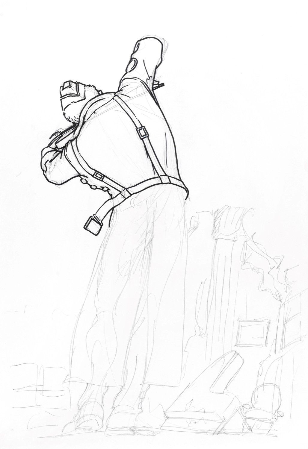 matita, china e acquerello su cartoncino, 35 x 50 cm