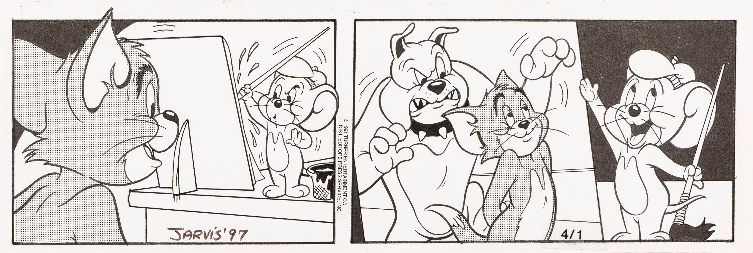 1997 Striscia giornaliera del 01/04/1997 per Tom & Jerry. Firmata.