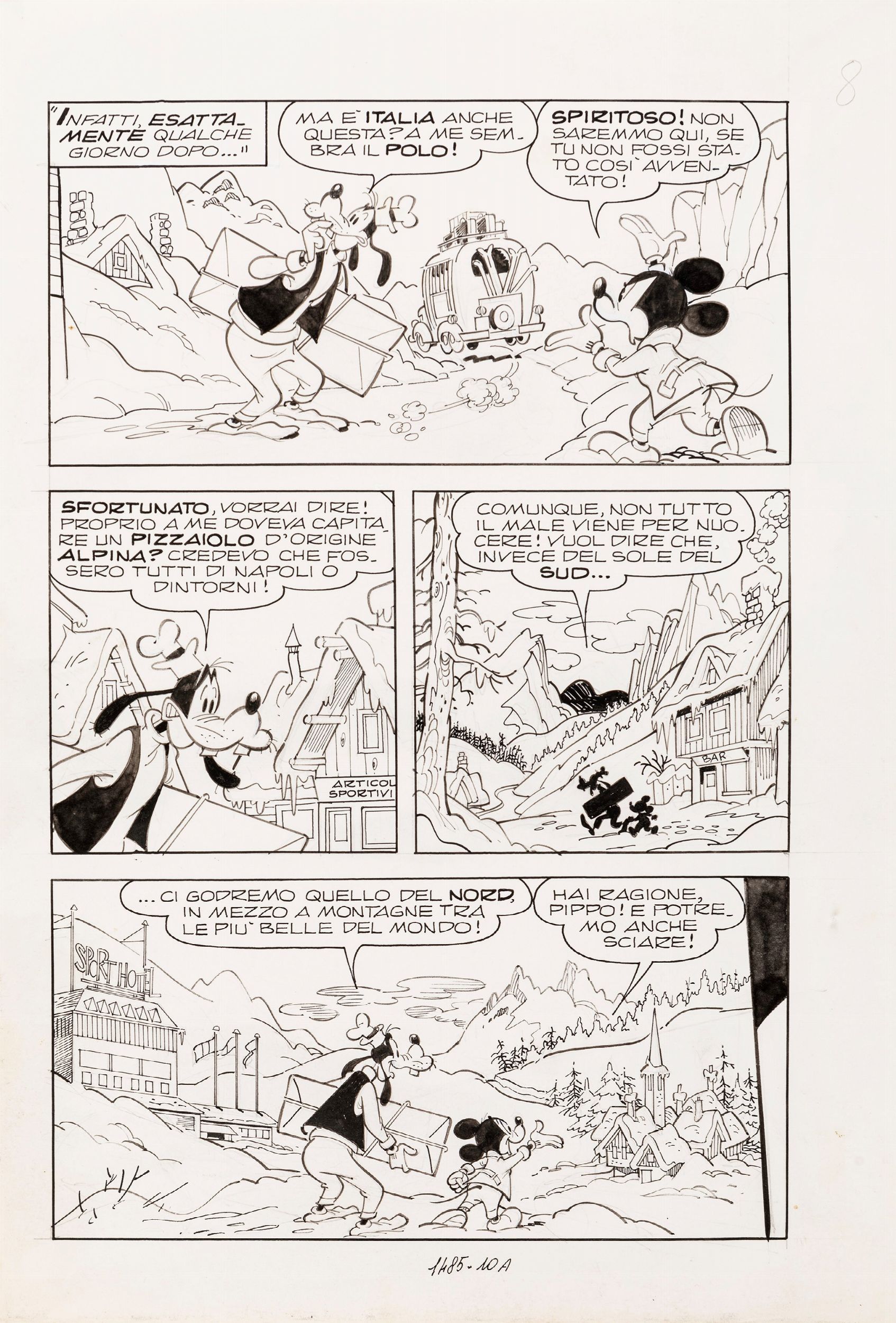 1984 Tavola originale realizzata da Carpi per Topolino e lo stendardo perduto, edita su Topolino n. 1485 a pag. 8 nel Maggio 1984.