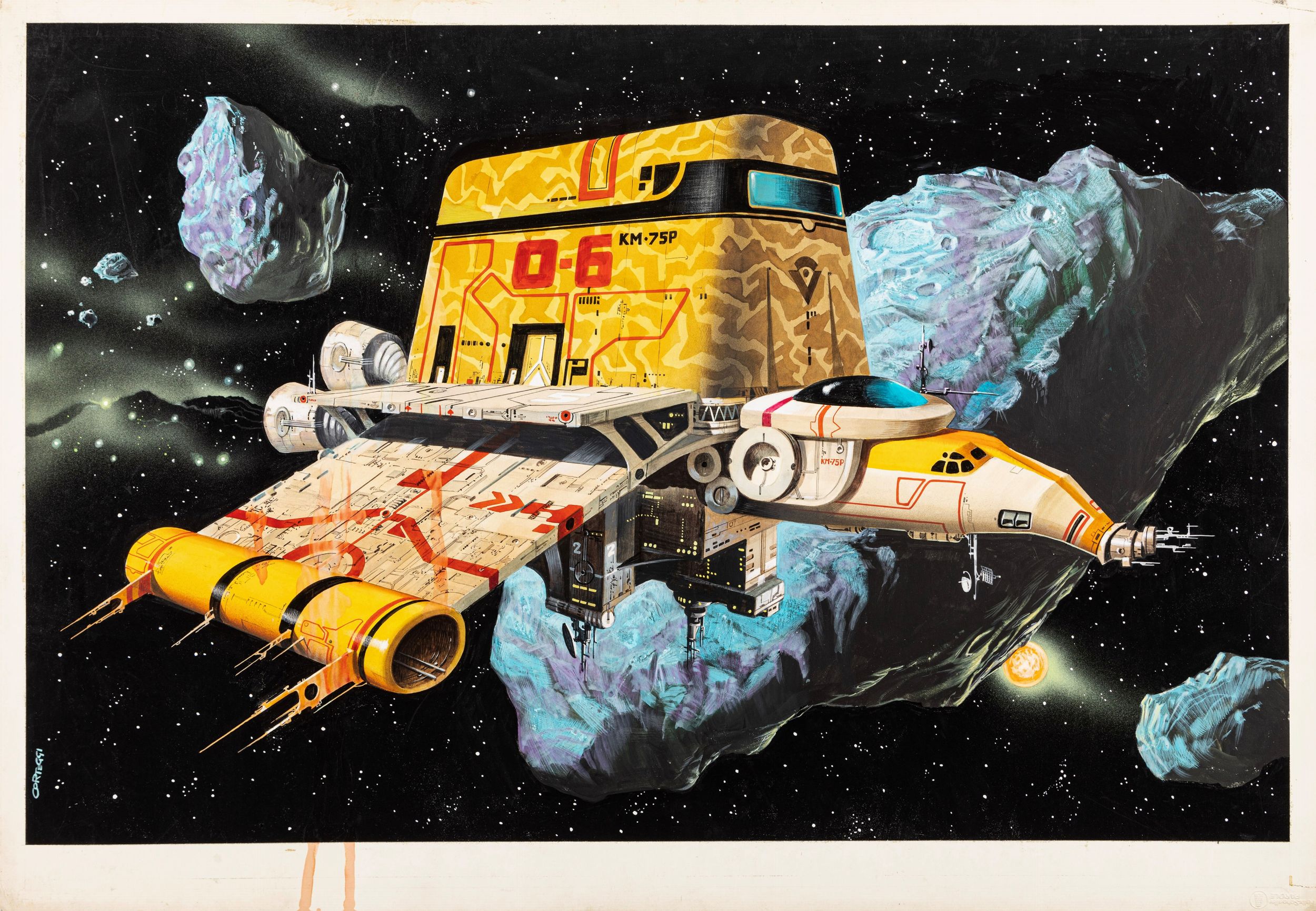 1981 Illustrazione originale realizzata da Corteggi per la Grande Enciclopedia della Fantascienza edita sul vol. 10 S.F. Profiles 2 dall’Editoriale Del Drago nel 1980-81. Firmata.