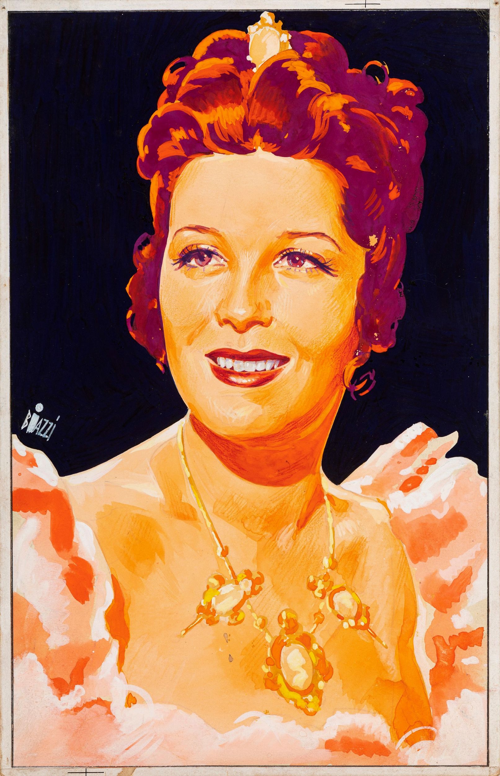 1939 Bozzetto originale realizzato da Biazzi raffigurante l'attrice Vanna Vanni per la brochure ufficiale del film Le educande di Saint-Cyr, diretto da Gennaro Righelli nel 1939. Firmato.
