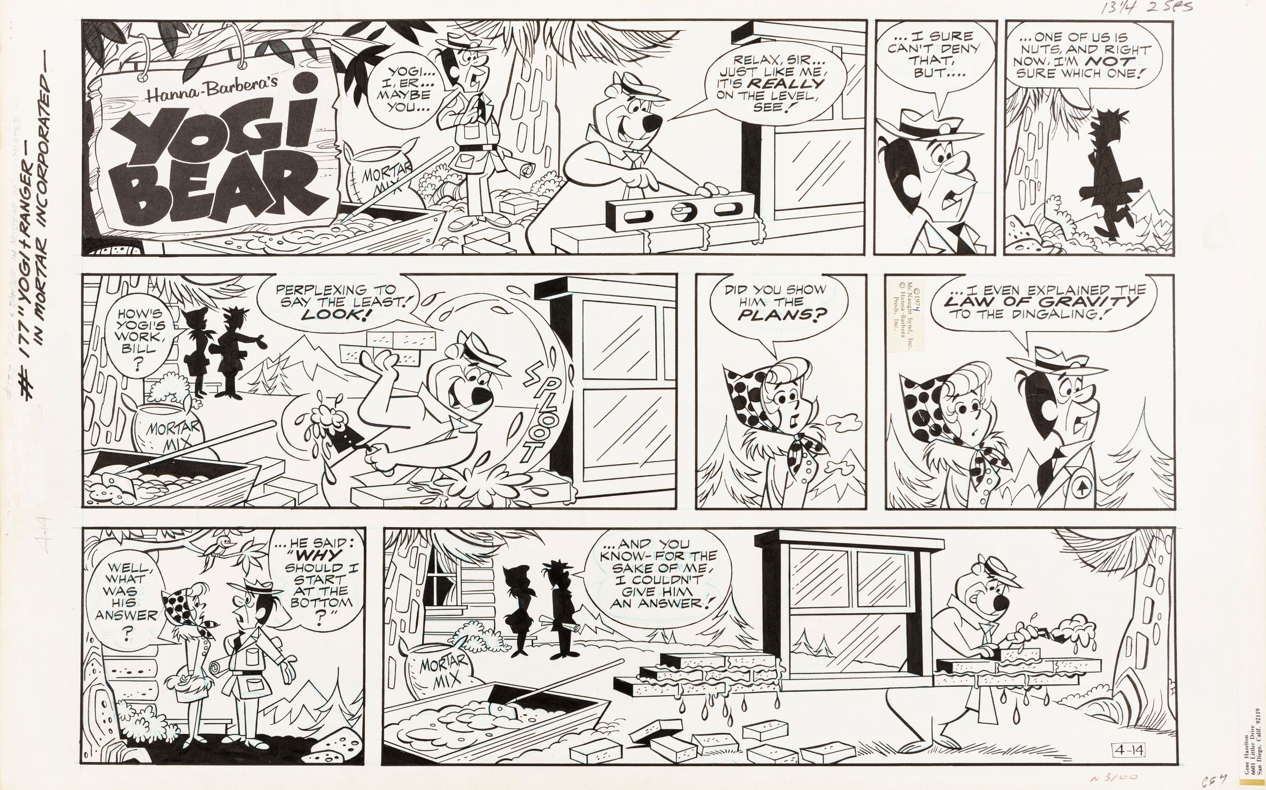 14/04/1974 Tavola domenicale del 14/04/1974 per Yogi Bear. Fori di affissione al margine sinistro.